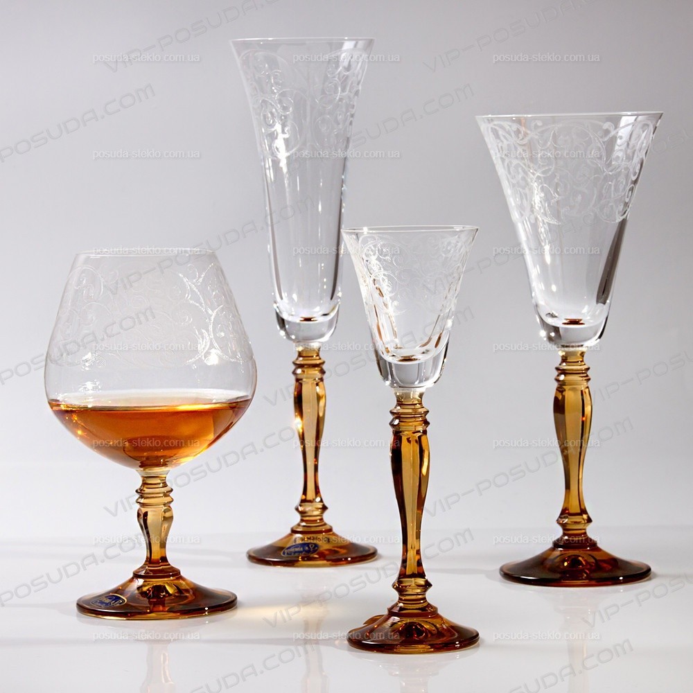 Набор хрустальных рюмок для водки на янтарной ножке на 6 персон Bohemia Victoria 50 мл