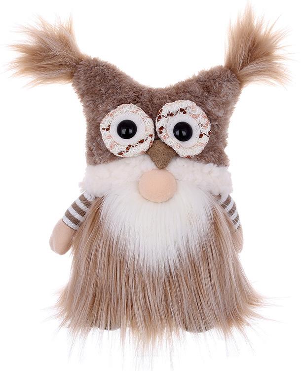 Новогодняя игрушка мягкая гнома бежевая Совушки-Гномушки 30 см