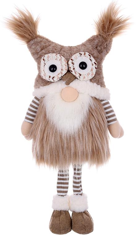 Новогодняя игрушка мягкая гнома бежевая Совушки-Гномушки 70 см