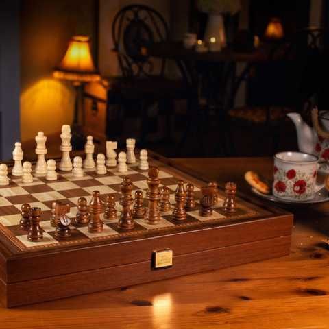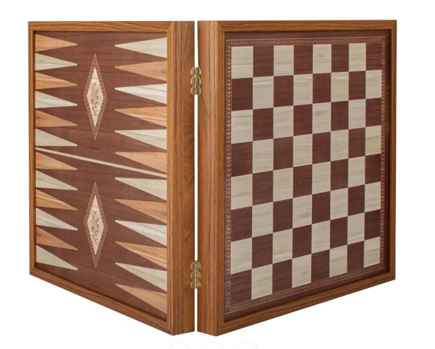 Цей набір об’єднує шахи та нарди — дві настільні гри, які ніколи не втрачають актуальності. Витриманий дизайн і відчуття якості в кожній деталі створюють особливий настрій для неспішного дозвілля.