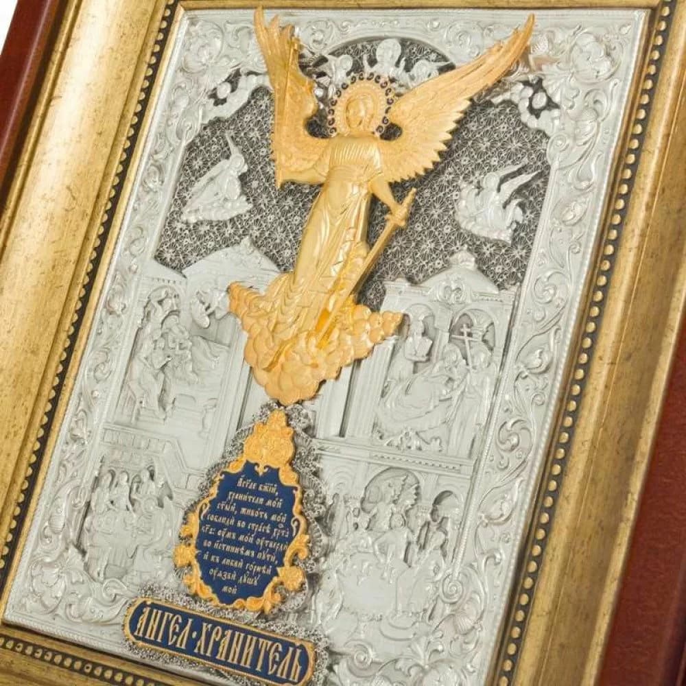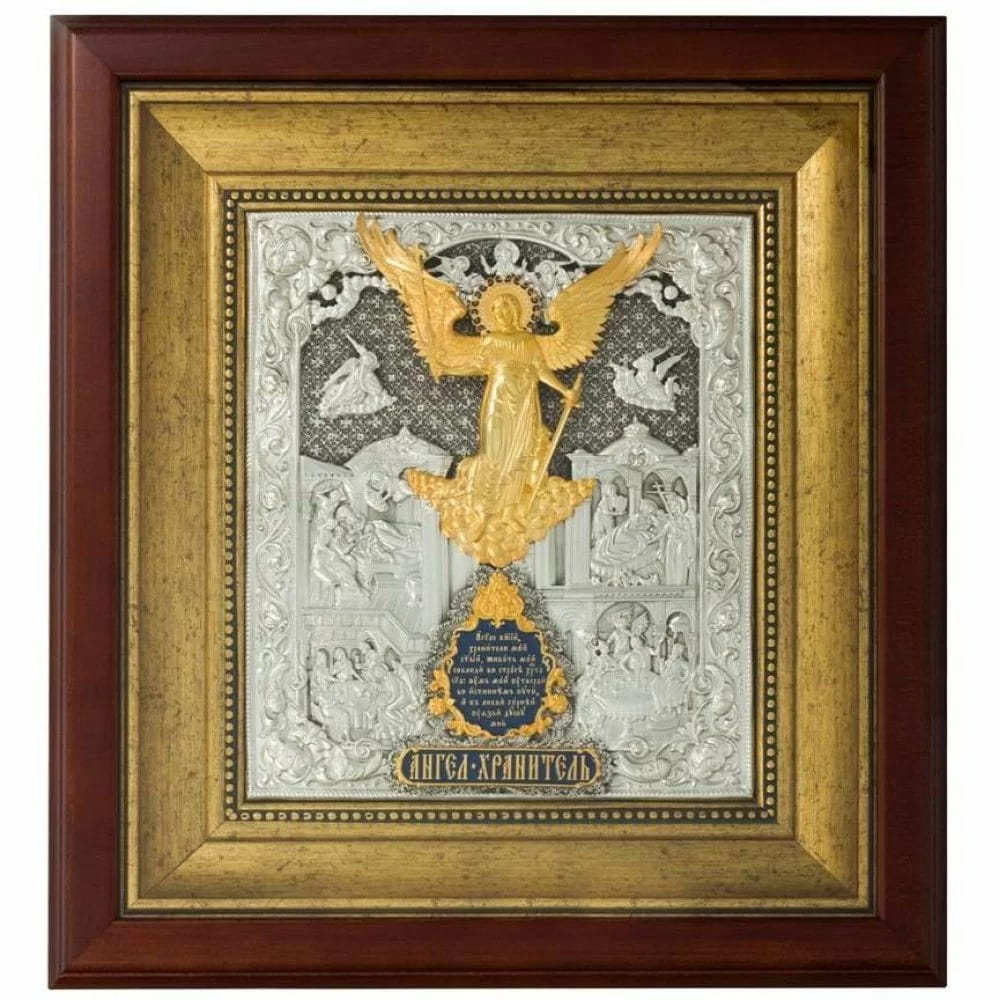 Ангел Хранитель дается каждому из нас при рождении, он следует за своим подопечным всю жизнь. В иконографии Ангела Хранителя изображают в облике молодого юноши, парящего в небесах. В правой руке он держит крест, как символ защиты души, вверенной ему на попечение, в левой руке – меч, с помощью которого он охраняет человека от зла и дурного влияния. Через икону к Ангелу Хранителю обращаются с всевозможными просьбами, поскольку он главный защитник и незримо помогает в любых сложных ситуациях. Если Вы испытываете страх и неуверенность, обратитесь к своему ангелу, он никогда Вас не оставит.