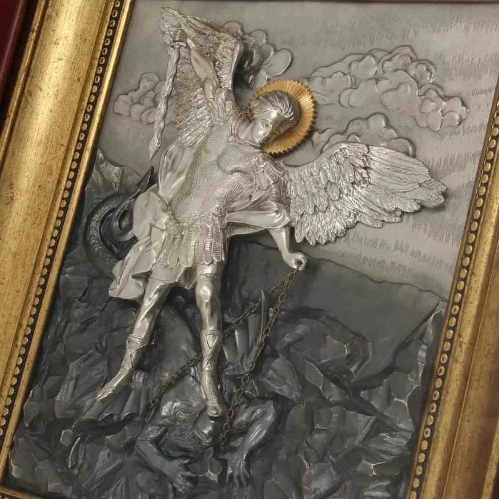 Святий Архангел Михайло – один із найшанованіших біблійних образів із православної церкви. Саме ім'я «Михайло» з давньоєврейської перекладається «Хто Як Бог». Чин Аристарха був дано Михайлу як ватажку всього небесного воїнства. На цій іконі відбито одне з найбільш оспівуваних його діянь: скидання диявола з небес. Також він прославився допомогою ізраїльтян при звільненні з Єгипетського полону. Аристарх Михайло допоміг місту Новгороду протистояти нападу Хана Батия. Не можна не відзначити, що саме архангел Михайло є покровителем та захисником міста Києва. Ікона з його зображенням у будинку оберігатиме не лише чоловіків із цим ім'ям, а й охоронятиме всю родину від ворогів. Цю ікону заведено ставити в будинку на новосілля, як оберіг для сім'ї.