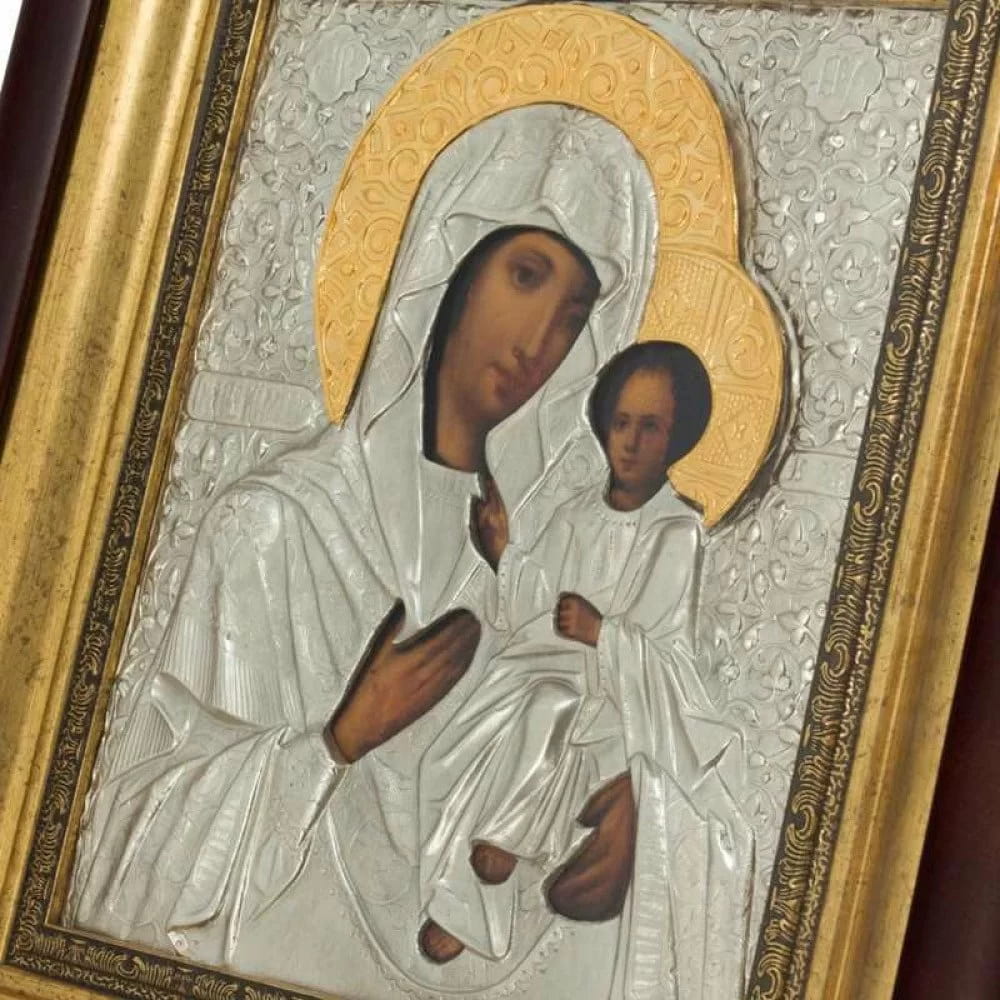 Как гласит православное предание, образ Пресвятой Богородицы Иверской был написан евангелистом Лукой. Впервые об этой иконе услышали в IX веке, когда при правлении Византийского императора Феофила велась активная кампания Иконоборчества. На тот момент икона хранилась у одной вдовы, проживавшей в городе Никея, и дабы сохранить эту икону от уничтожения, женщина бросила ее в море и та направилась к западу. Спустя два века служители Иверского монастыря на Афоне увидели в море икону, поддерживаемую пламенем. Икону оставили на территории Иверского монастыря, от которого она и получила свое имя. Оригинал Пресвятой Богородицы Иверской по сегодняшний день на Афоне, в Греции.