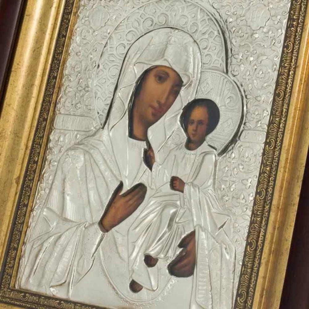 Как гласит православное предание, образ Пресвятой Богородицы Иверской был написан евангелистом Лукой. Впервые об этой иконе услышали в IX веке, когда при правлении Византийского императора Феофила велась активная кампания Иконоборчества. На тот момент икона хранилась у одной вдовы, проживавшей в городе Никея, и дабы сохранить эту икону от уничтожения, женщина бросила ее в море и та направилась к западу. Спустя два века служители Иверского монастыря на Афоне увидели в море икону, поддерживаемую пламенем. Икону оставили на территории Иверского монастыря, от которого она и получила свое имя. Оригинал Пресвятой Богородицы Иверской по сегодняшний день на Афоне, в Греции.