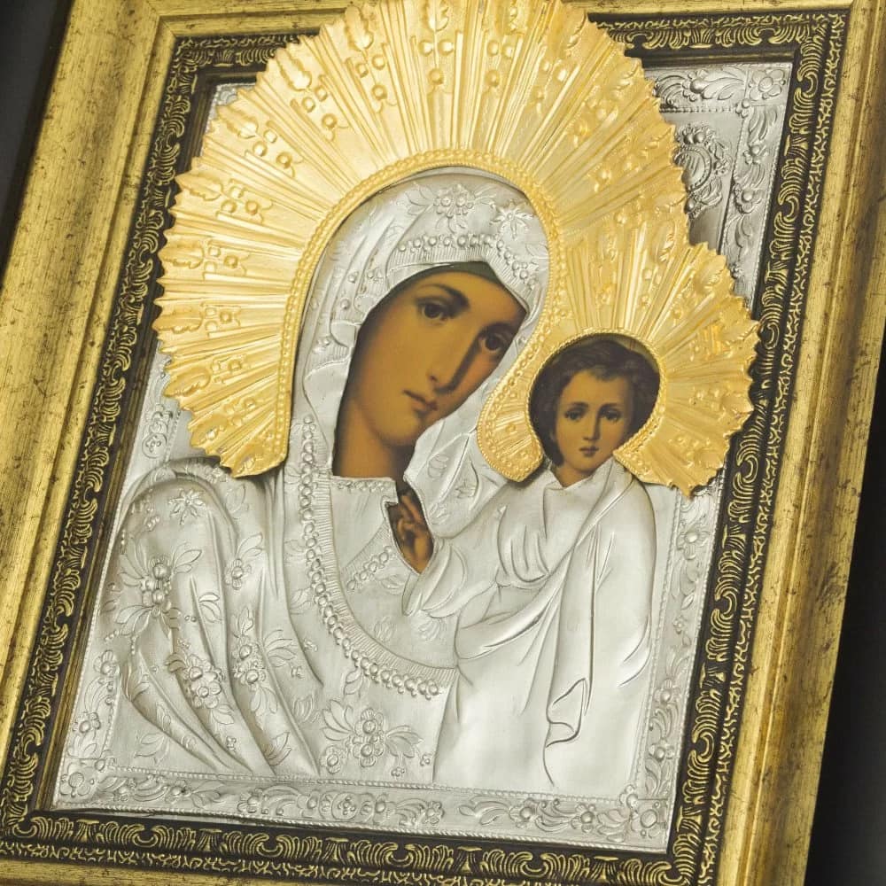 Исторически, Казанская икона Божией Матери — чудотворная икона Богородицы, появилась в Казани в 1579 году. Это один из самых чтимых образов в православной церкви. Если вы планируете дарить эту икону, лучше всего она подойдет тем, кто в скором времени собирается венчаться. Перед ней благословляют к венцу молодых. Так же, она покровительствует сплоченности в семье и ее благосостоянию.