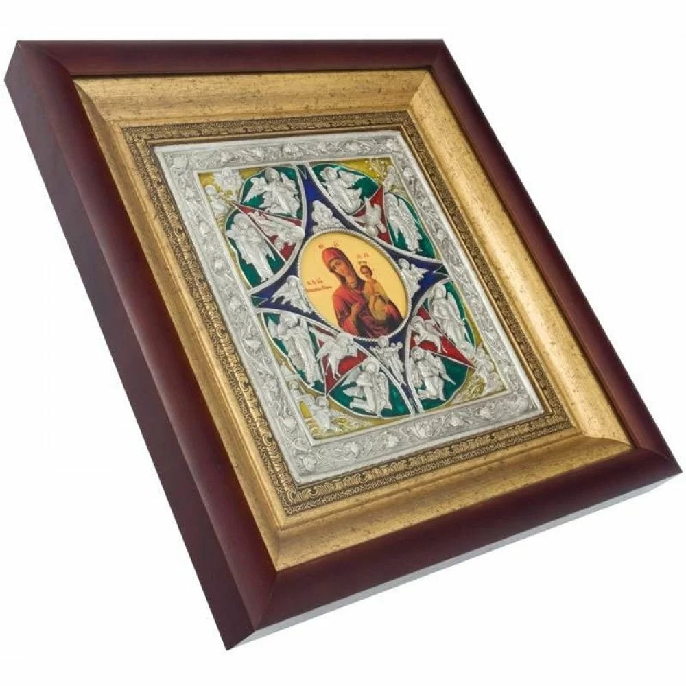 В иконописи Неопалимая Купина – это прообраз Пресвятой Девы, который указывает на ее чистоту и непорочность зачатия Христа. В этой иконе раскрываются важнейшие образы и сюжетные линии, описанные в Ветхом Завете. Изначально, Неопалимой купиной был горящий и несгорающий в огне куст терновника, в котором Моисею явился Бог и призвал вывести жителей Израиля на поиски Земли Обетованной. На этой иконе образ Божией Матери с младенцем на руках расположен в центре иконы. Также она иногда держит на руках атрибуты пророчеств, описанных в Ветхом Завете, например Гору из пророчества Даниила, Лестницу Иакова, Врата Иезекииля и т. п. Ее образ обрамлен в восьмиконечную звезду, которая в свою очередь состоит из двух четырехконечных звезд. В четырех углах иконы изображены ветхозаветные сюжеты: Моисей перед Купиной, сон Иакова, Врата Иезекииля и Древо Иессеево. Также важное место занимают изображенные ангелы в лучах звезды с лицами, обращёнными к Пресвятой Деве. Они почитают ее и поклоняются чудесному рождению Сына Божьего. Икона Неопалимая Купина считается заступницей перед пожарами, оберегая Ваш дом от этого бедствия. Кроме того, она - целительница душ, усмиряя сомнения в душе, помогает найти истинный путь.