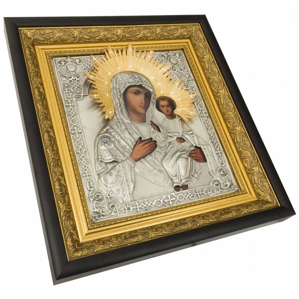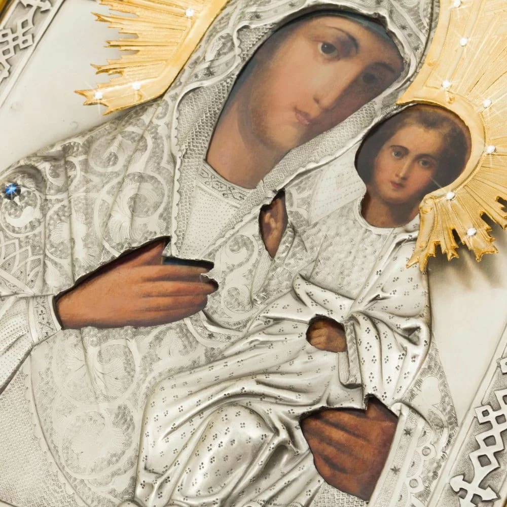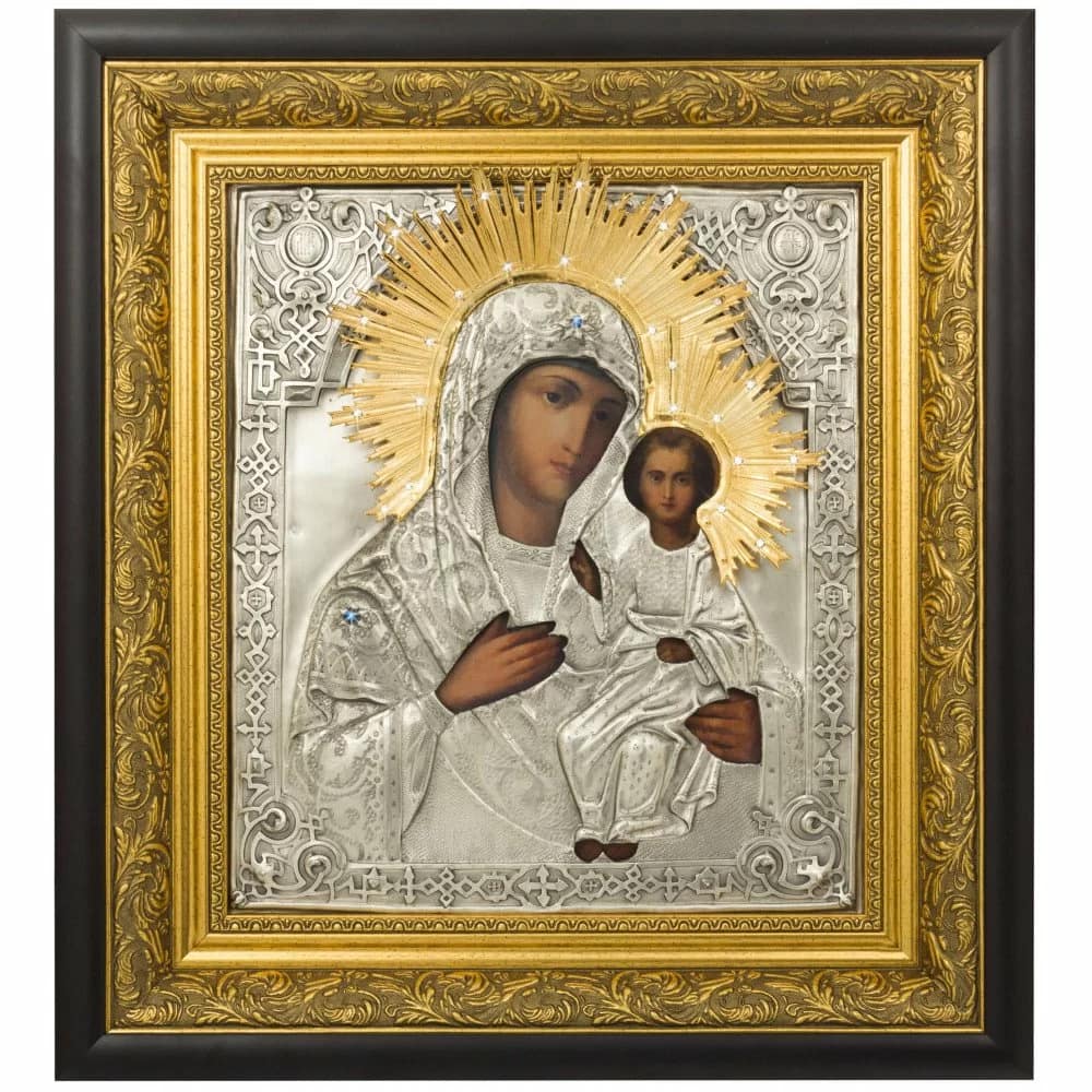 Одна из икон с изображением Богородицы в иконографическом стиле «Одигитрия», где младенец-Христос изображен на руках у Марии, держащим в одной руке свиток со святым писанием, а другую руку держит в благословляющем знаке. Эта икона - родовая реликвия русских правителей еще с начала XI века. По преданию, когда император Константин IX Мономах, отдал свою дочь Анну в жены русскому князю Всеволоду Ярославовичу, то передал икону в дар, как символ благословленного союза между Константинополем и Киевской Русью. Имя «Смоленская» она получила, когда в XII столетии икона была помещена в специально построенный для нее храм в городе Смоленск.