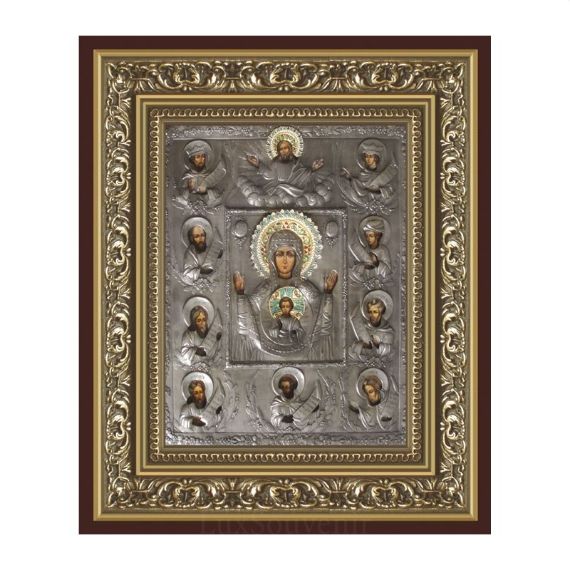 Ікона Пресвятої Богородиці зображує Божу Матір з руками, зведеними до неба у молитві, і божественне немовля – Спаса-Еммануїла, на тлі круглого щита. Цей образ Богоматері належить до одного з перших в іконописі. У нього є своя історія і розповідає вона про те, як 1170 року ікона Пресвятої Богородиці врятувала місто Новгород від руйнування армією сина Суздальського Князя. Численні благання жителів були звернені до Всевишнього, і за великим передбаченням архієпископа новгородського Іллі, ікону повісили на міську стіну для захисту. Коли почався напад, в ікону потрапила стріла, з очей Святого образу потекли сльози і вороги впали в жах та паніку та почали нападати один на одного. Натхненні цим дивом новгородці змогли відстояти своє місто та перемогти. Таке було диво досконале цією іконою. У домі ікона Пресвятої Богородиці оберігатиме Вас від злих промислів ворогів і допомагатиме у всіх Ваших скорботах.