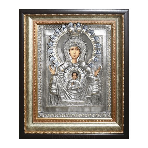 Ікона Пресвятої Богородиці зображує Божу Матір з руками, зведеними до неба у молитві, і божественне немовля – Спаса-Еммануїла, на тлі круглого щита. Цей образ Богоматері належить до одного з перших в іконописі. У нього є своя історія і розповідає вона про те, як 1170 року ікона Пресвятої Богородиці врятувала місто Новгород від руйнування армією сина Суздальського Князя. Численні благання жителів були звернені до Всевишнього, і за великим передбаченням архієпископа новгородського Іллі, ікону повісили на міську стіну для захисту. Коли почався напад, в ікону потрапила стріла, з очей Святого образу потекли сльози і вороги впали в жах та паніку та почали нападати один на одного. Натхненні цим дивом новгородці змогли відстояти своє місто та перемогти. Таке було диво досконале цією іконою. У домі ікона Пресвятої Богородиці оберігатиме Вас від злих промислів ворогів і допомагатиме у всіх Ваших скорботах.