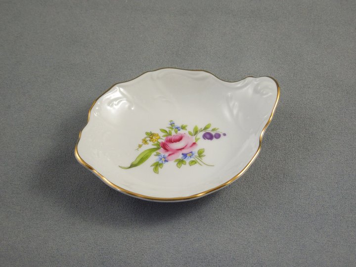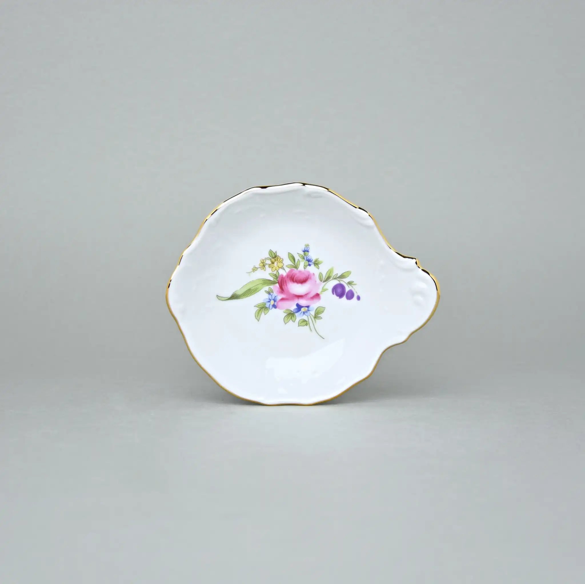 Икорница фарфоровая белая с пёстрым рисунком Thun Bernadotte Мейсенский Букет 11 см с золотым кантом