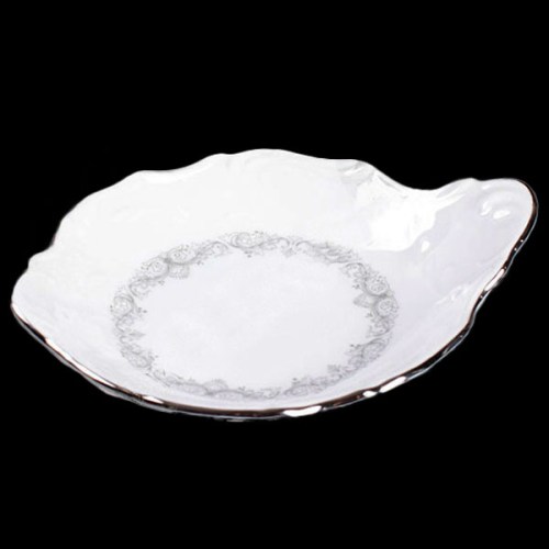 Икорница фарфоровая белая с серым орнаментом Thun Bernadotte Серебряное Кружево 11 см с платиновым кантом