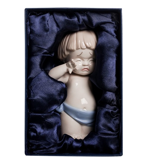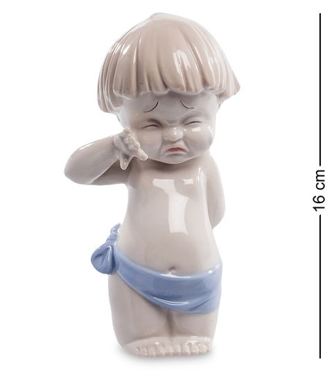 И вновь Павоне удивляют нас своей коллекцией фигурок-мальчиков. На этот раз плакса-малыш будет украшать вашу полку. Автор смог ярко изобразить эмоцию грусти, детской капризности. Мальчик опустил голову и тихонько заплакал, нахмуривая бровки и закрывая сильнее глазки. Одной рукой он вытирает со щеки слезы, а другую держит за спиной, при этом показывая свою вину. У малютки светло-русые волосы и голубое полотенце ниже животика. Такая фигурка станет любимым дополнением в коллекцию, отличным подарком молодой маме, учительнице, или возрастному психологу.
