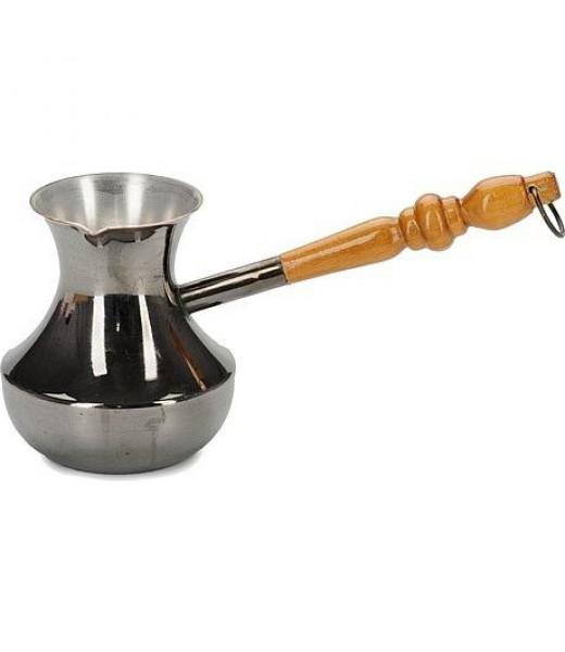 Эта турка изготовлена из меди с удобной деревянной ручкой. Кофе, сваренный в турке, отличается достаточно насыщенным вкусом и густой консистенцией с небольшим количеством кофейной гущи. В напитке остаются почти все вещества, которые содержатся в обжаренном кофейном зерне.