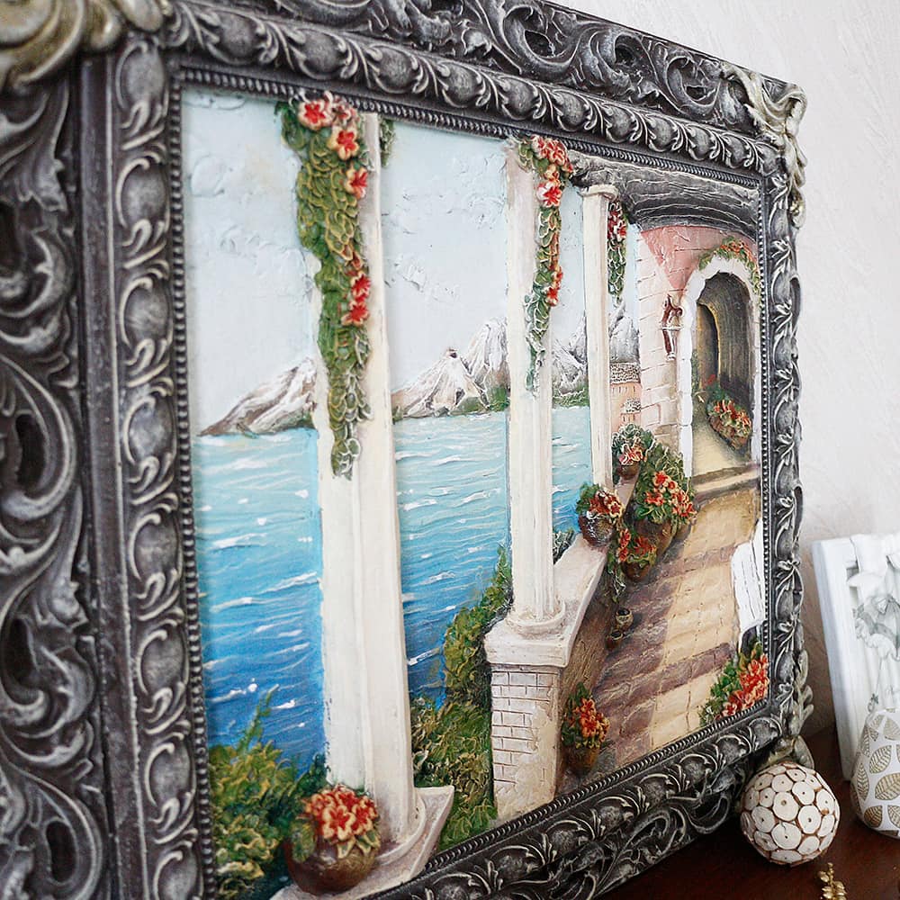 Заказать красивую картину авторской разработки можно на этой странице. Будьте уверенны, что картина объемная «Итальянский дворик» – это незабываемый подарок для влюбленных или супружеской пары.