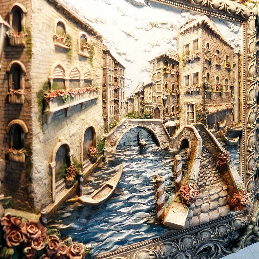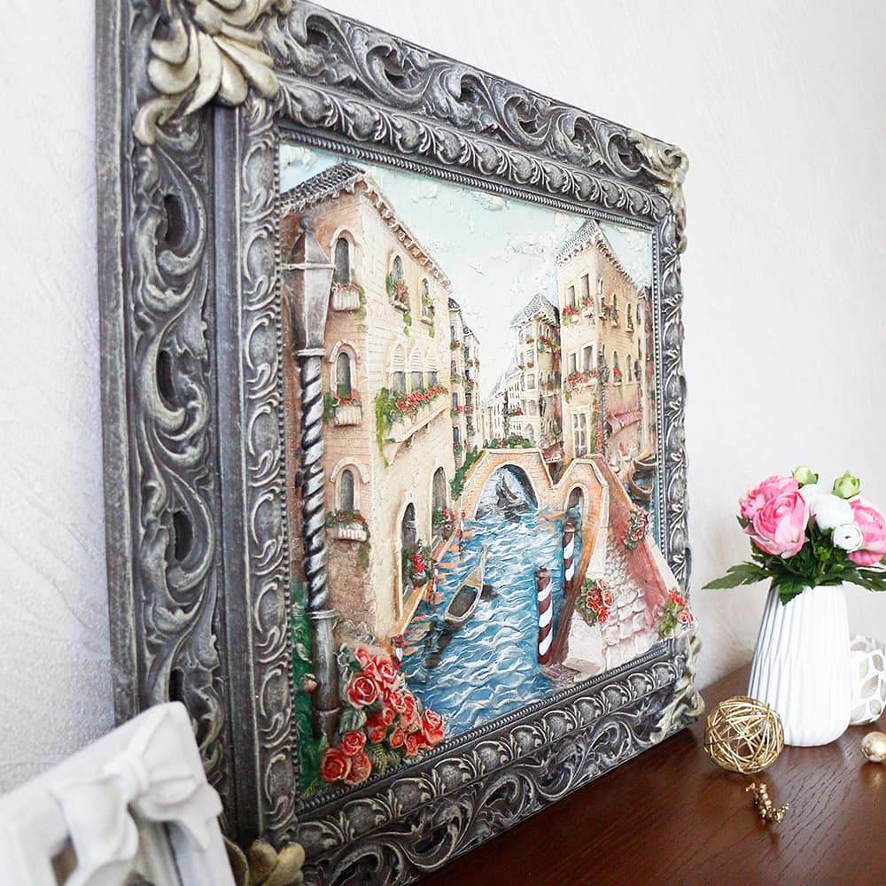 Венеция – жемчужина Италии. Ее улочки связывают между собой более 400 мостов. Мостики уникальны и каждый имеет непревзойденную историю: трагичную или романтичную. Всматриваясь в барельеф, можно увидеть необыкновенную красоту одного романтического Венецианского мостика.