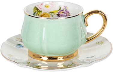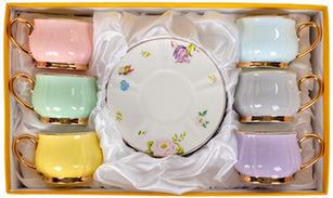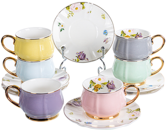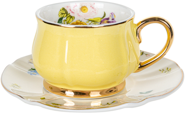 До кожної чашки додається фарфорова блюдце з тонким квітковим візерунком. Високоякісний фарфор гарантує довговічність, стійкість до втрати кольору та блиску, а також зручність у догляді. Сервіз чудово підходить для подачі еспресо, капучино чи ароматної чорної кави, перетворюючи кожну перерву на приємний момент.
