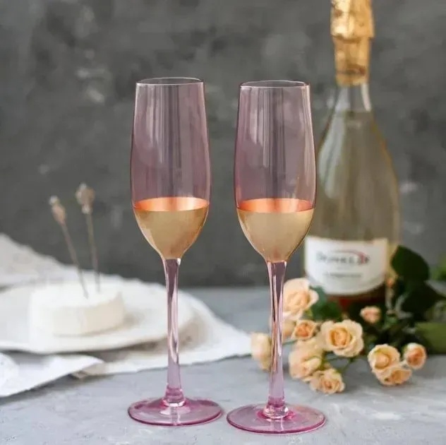 Келих для шампанського кольоровий скляний Olens Рожеве золото 250 мл