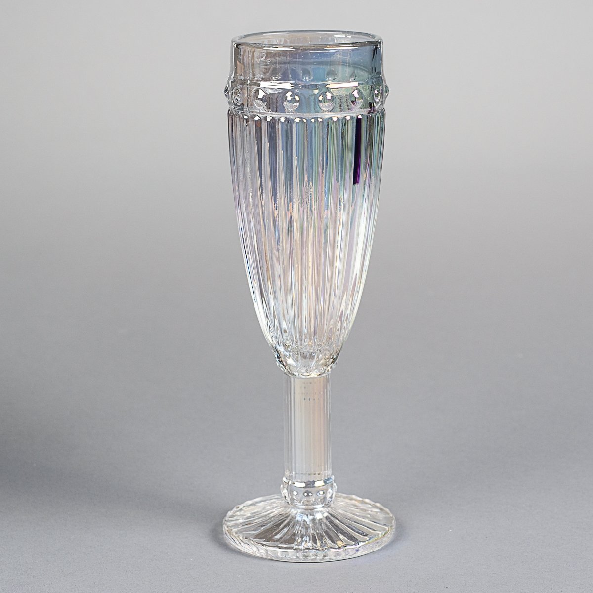 Келих для шампанського скляний кольоровий «Діамант» 150 мл — елегантне рішення для сервірування ігристих вин. Прозоре скло з легким райдужним відтінком підкреслює гру світла та робить подачу напою виразною. Рельєфні вертикальні лінії та декоративний обід надають келиху характеру й візуальної глибини.