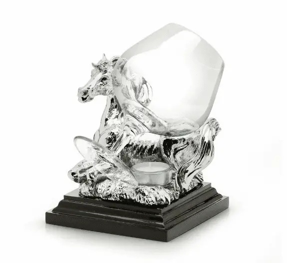 Келих із підігрівом для коньяку «Кінь» — це виразне поєднання сили, руху та витонченої естетики. Скульптурна композиція з фігурою коня, виконана вручну зі срібла 925 проби, створює відчуття динаміки та внутрішньої енергії. У поєднанні з прозорим богемським склом цей келих виглядає як повноцінний декоративний акцент, що притягує погляд і формує настрій.
