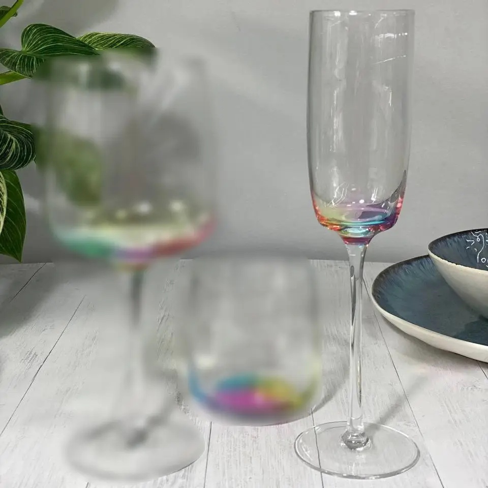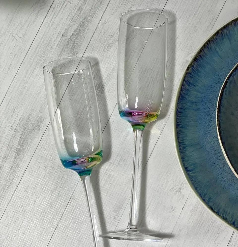 Бокал для шампанського та склянка «Клер» — це більше, ніж просто посуд. Це акцент, який здатен перетворити звичайну подачу напою на естетичну подію. Тонкі грані, плавні контури й яскравий кольоровий перехід на дні — саме те, що вражає з першого погляду.