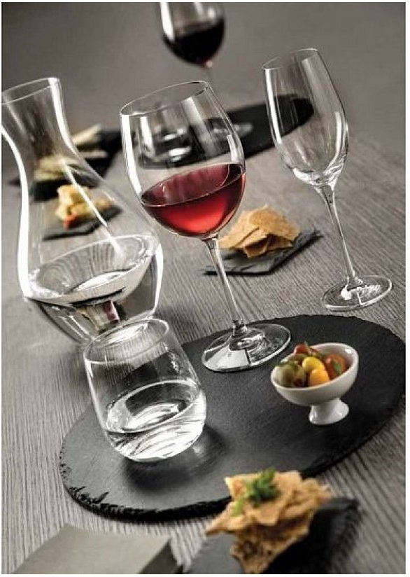 Кожен предмет створений з урахуванням особливостей напою: келихи розкривають аромат вина, фужери зберігають гру бульбашок шампанського, рюмки подають міцні напої стильно, а склянки підходять і для води, і для коктейлів. Декантер завершує колекцію, перетворюючи подачу вина на справжнє мистецтво.