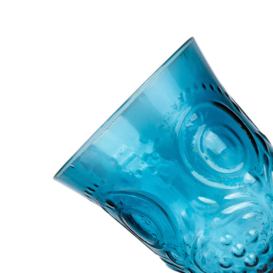 Келихи неймовірно глибокого і насиченого кольору морської хвилі створені для красивого життя. Фужери у формі тюльпана не тільки тішитимуть напоями, а й стануть яскравим інтер'єрним акцентом. Келих декорований фактурними візерунками, завдяки яким його приємно утримувати в руках, не боячись зісковзування вниз. Пригощайте улюбленими винами своїх друзів, влаштовуйте чудові й атмосферні свята з нашою колекцією келихів із кольорового скла.