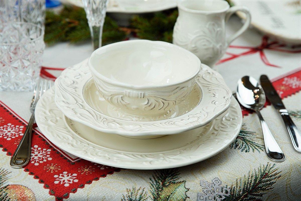 Тарелки благородного оттенка айвори покрыты износостойкой глазурью, которая придает им невероятный глянцевый блеск и подчеркивает эффект патины на узорах.