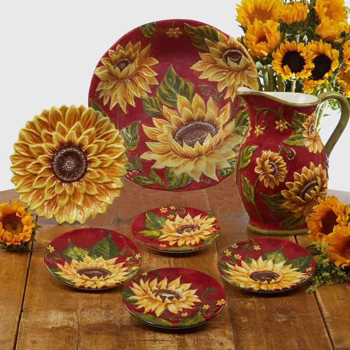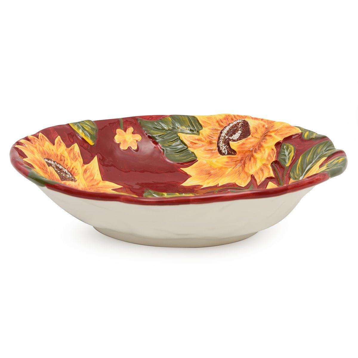 Яркий оригинальный дизайн керамического салатника, как и других предметов из коллекции «Подсолнухи на закате», специально для бренда Certified International разработан студией художественного декора Tre Sorelle Studios.
