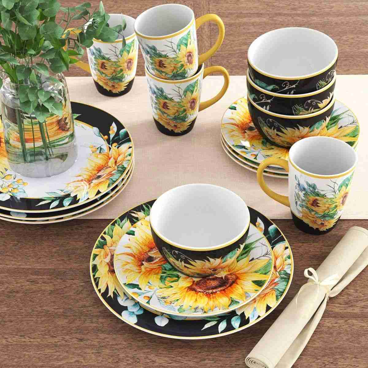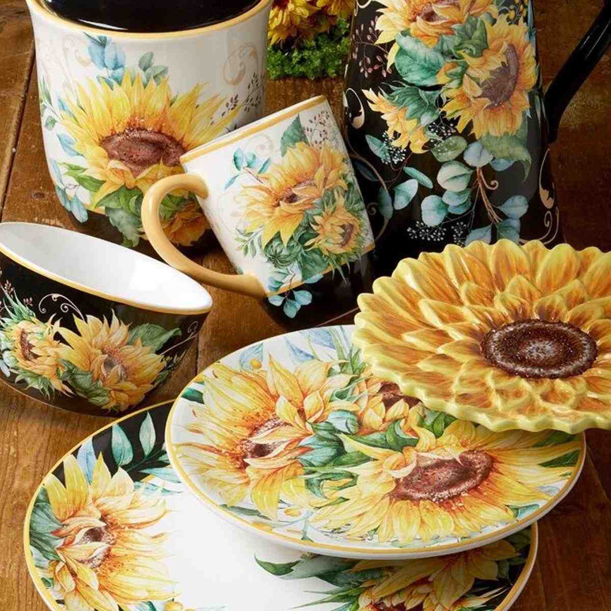 Керамический столовый сервиз с подсолнухами на 4 персоны Букет Подсолнухов