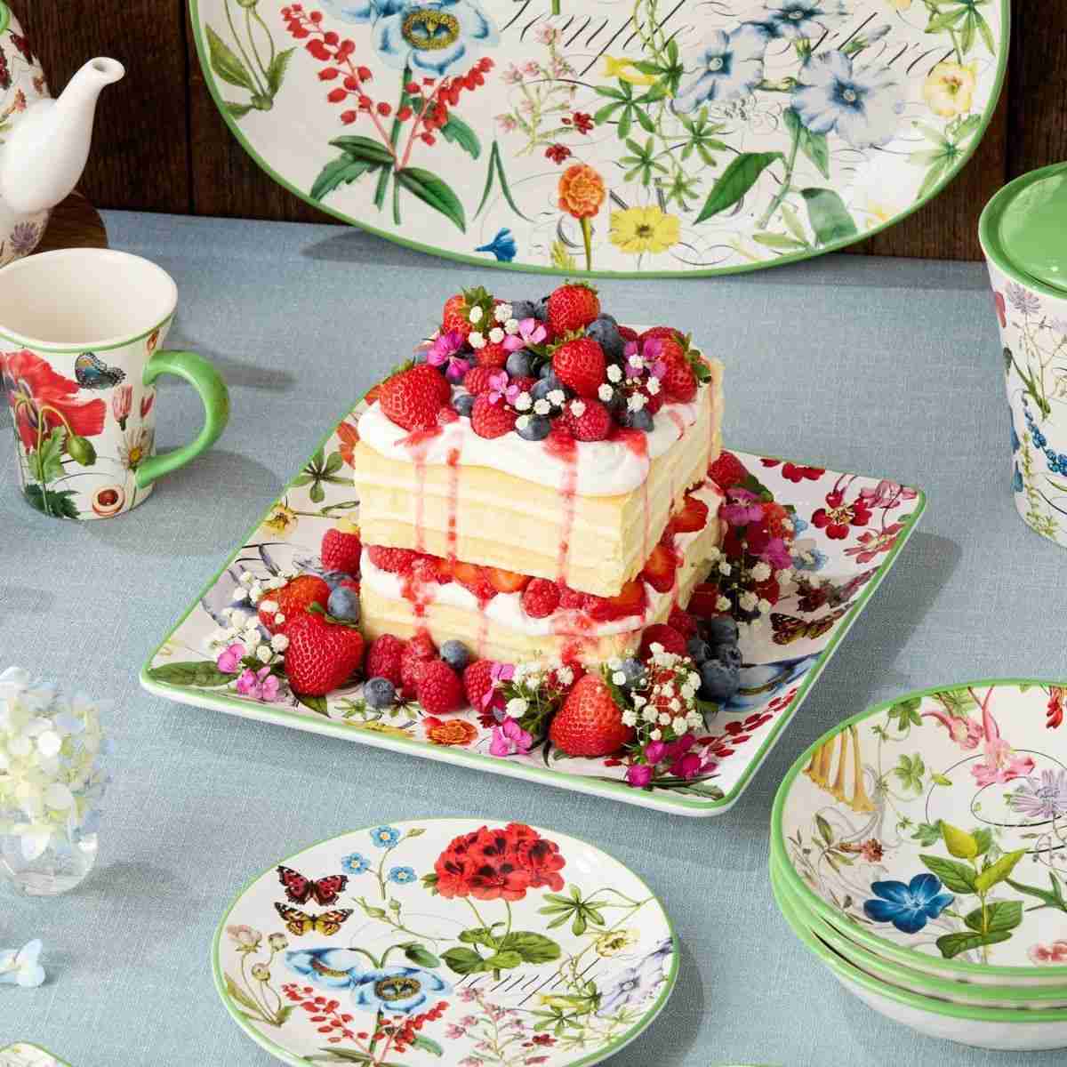 Это керамическое блюдо с впечатляющим цветочным рисунком моментально превращает сервировку в эффектный акцент и добавляет вашему столу настоящую живость. Его крупный квадратный формат идеально подходит для тортов, закусок, фруктов и красивой подачи праздничных угощений. Насыщенные краски, бабочки и цветы создают ощущение летнего сада прямо у вас дома. Посуду можно мыть в посудомоечной машине; не рекомендуется использовать средства для очищения с абразивными частицами. Прочная керамика сохраняет яркость рисунка и делает блюдо надёжным помощником на каждый день. Выбирая его, вы наполняете дом атмосферой уюта, красоты и вдохновения для каждой сервировки.