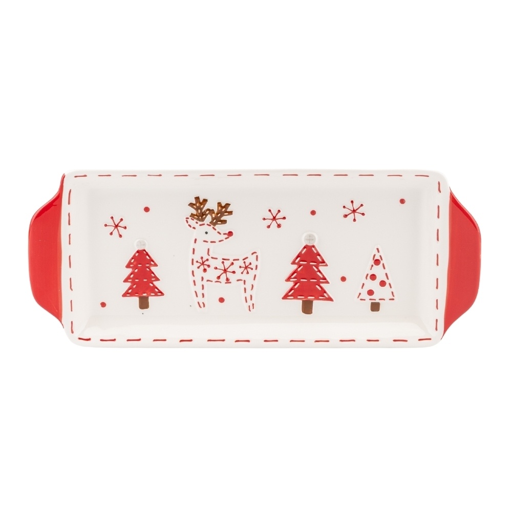 Эти блюда из коллекции Winter Story созданы, чтобы стать настоящим центром праздничного стола. Белоснежная керамика с контрастным красным обрамлением и милыми зимними мотивами — Санта, ёлочки, снежинки и олени — сразу погружают в атмосферу сказочного Рождества. Их прямоугольная форма позволяет эффектно разложить закуски, сладости или фрукты, создавая аккуратную и гармоничную композицию, которая украсит любую сервировку.