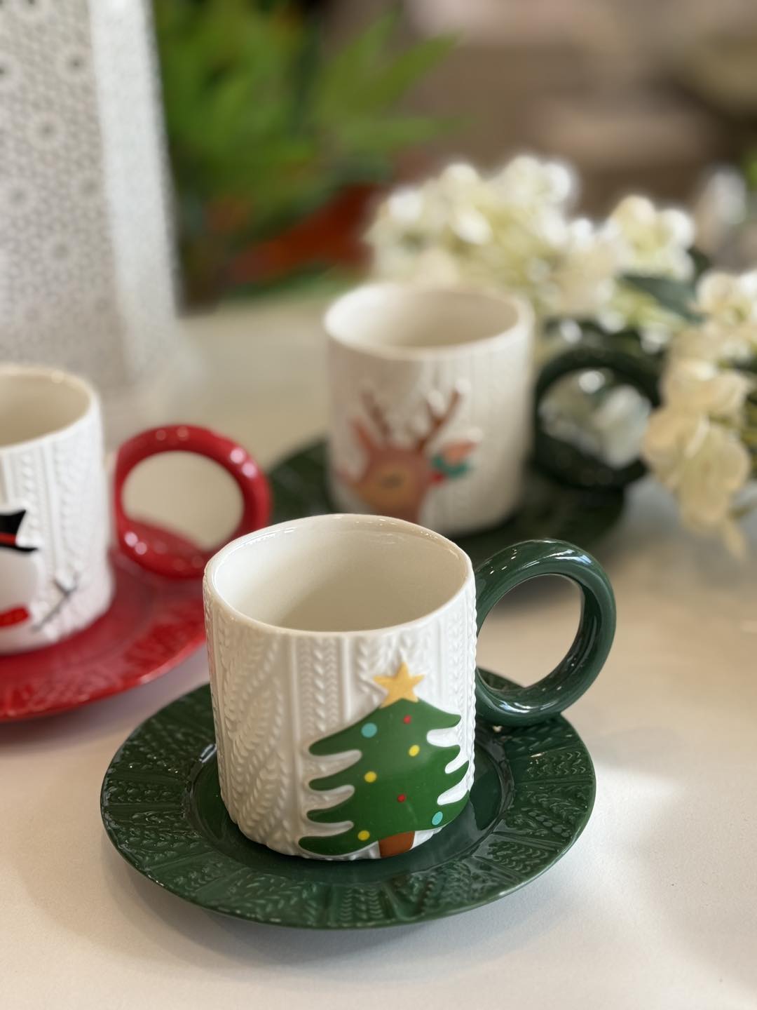 Ці кружки створені для атмосферних зимових вечорів: наповніть їх гарячим напоєм, подайте на блюдцях улюблені смаколики — і додайте вашому дому ще більше тепла, радості та святкового блиску.
