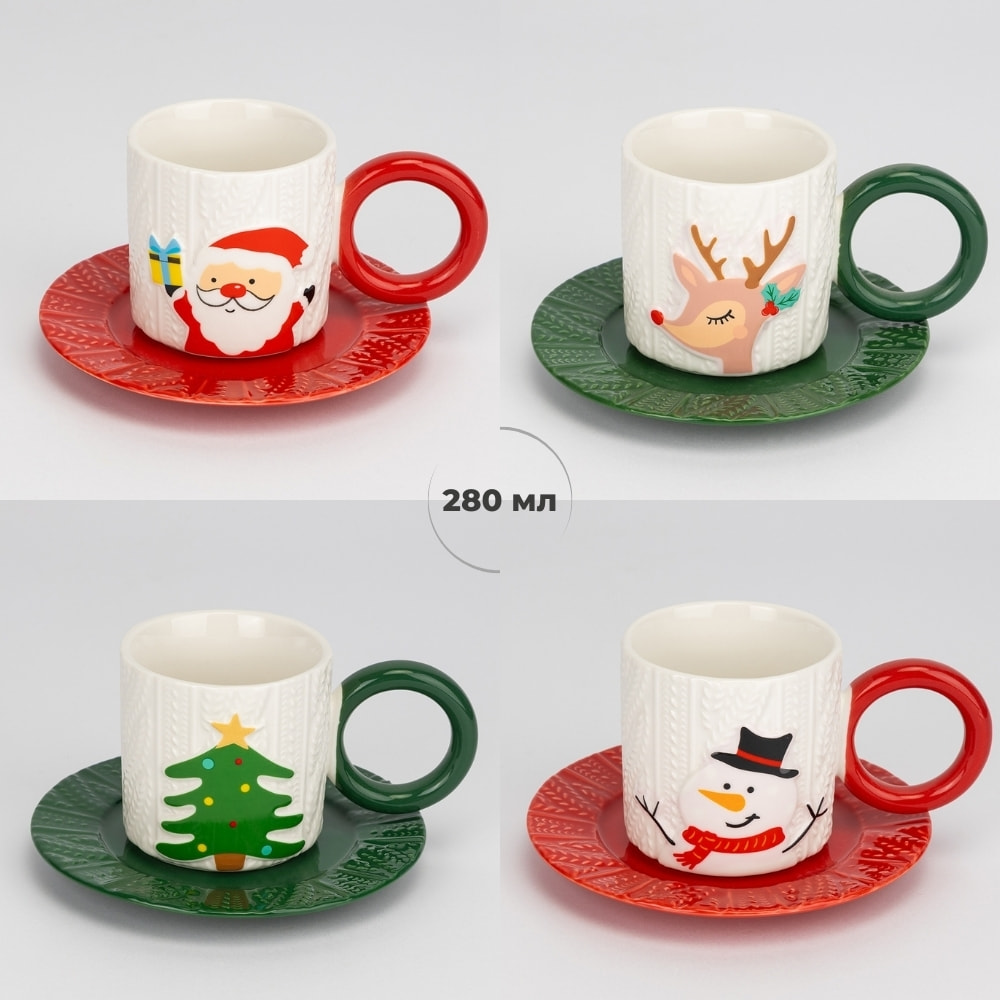 Кожна кружка постачається з блюдцем у тон ручки, що робить сервірування особливо святковим. Дизайн обирається випадково, але кожен варіант легко комбінується з іншими з цієї серії — зберіть власну різдвяну колекцію!