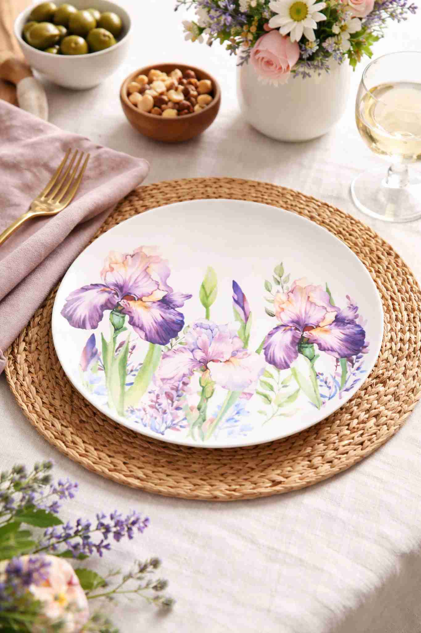 Тарілки з колекції «Іриси» — це витончене поєднання ніжності та художньої виразності, де кожна квітка немов оживає на білосніжній поверхні. Акварельний малюнок з плавними переходами відтінків створює відчуття легкості, ніби перед вами не посуд, а справжній витвір мистецтва. Такі тарілки миттєво перетворюють сервіровку, додаючи їй свіжість весняного саду та особливий настрій затишку.