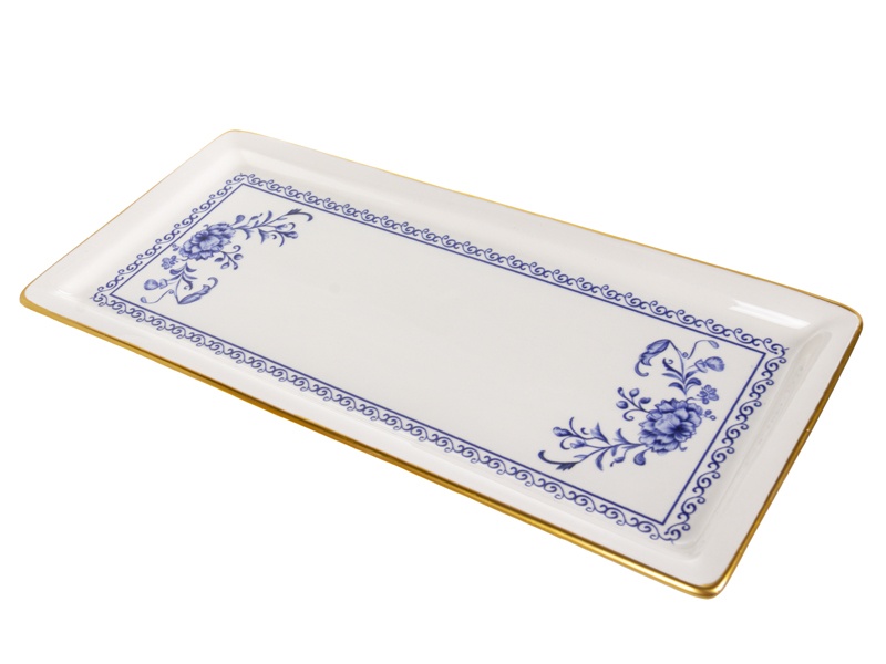 Керамічне прямокутне блюдо з малюнком Блакитна Троянда 35,5*16 см