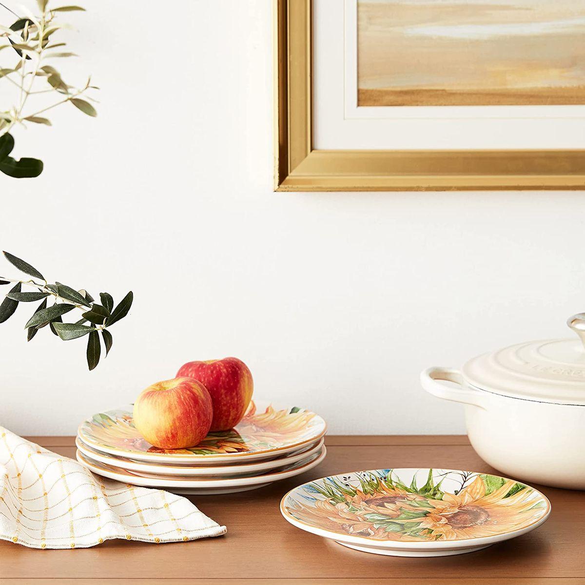 БрендCertified International Країна виробництваКитай КолекціяБукет соняшників Кількість предметів4 МатеріалКераміка УпаковкаФірмова Вид тарілкиНабір тарілок Наявність декоруТарілка з візерунком Діаметр посуду23 см Кількість осіб4