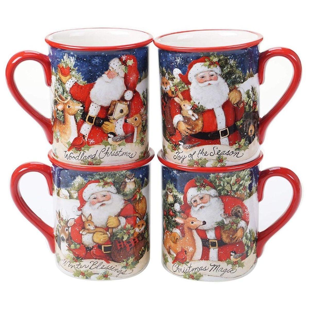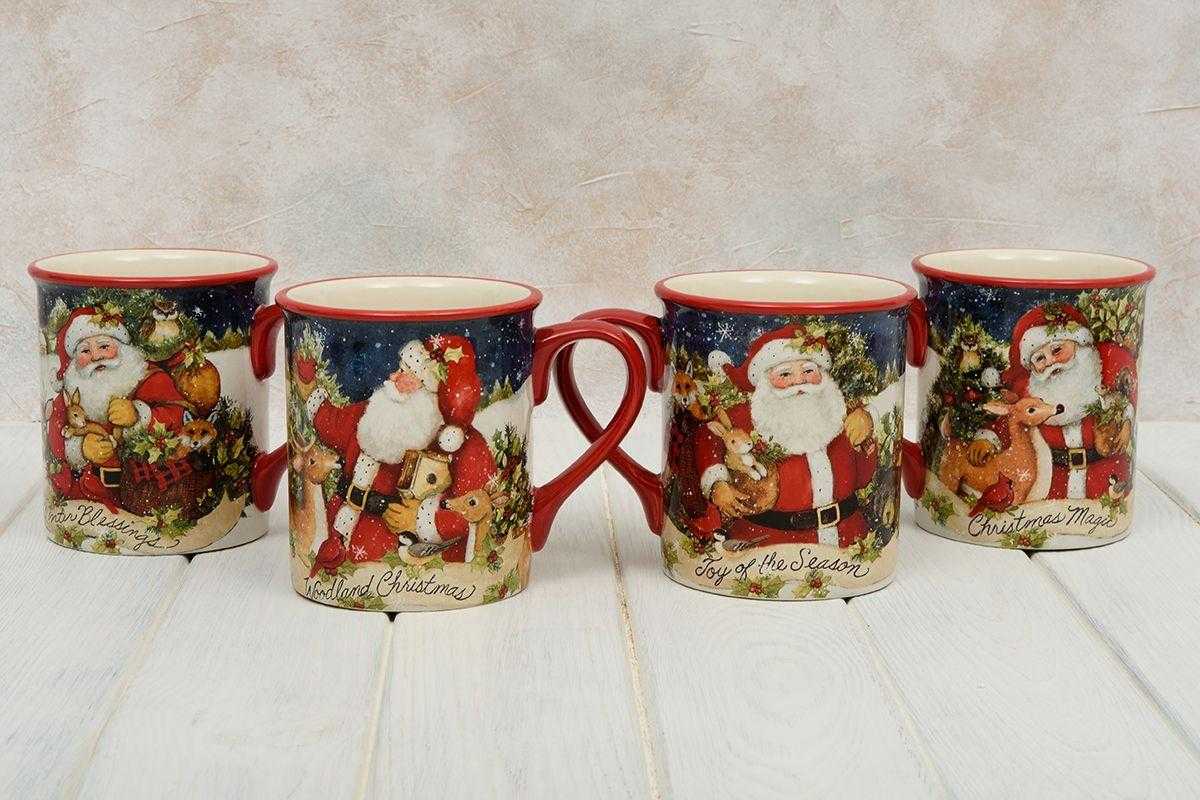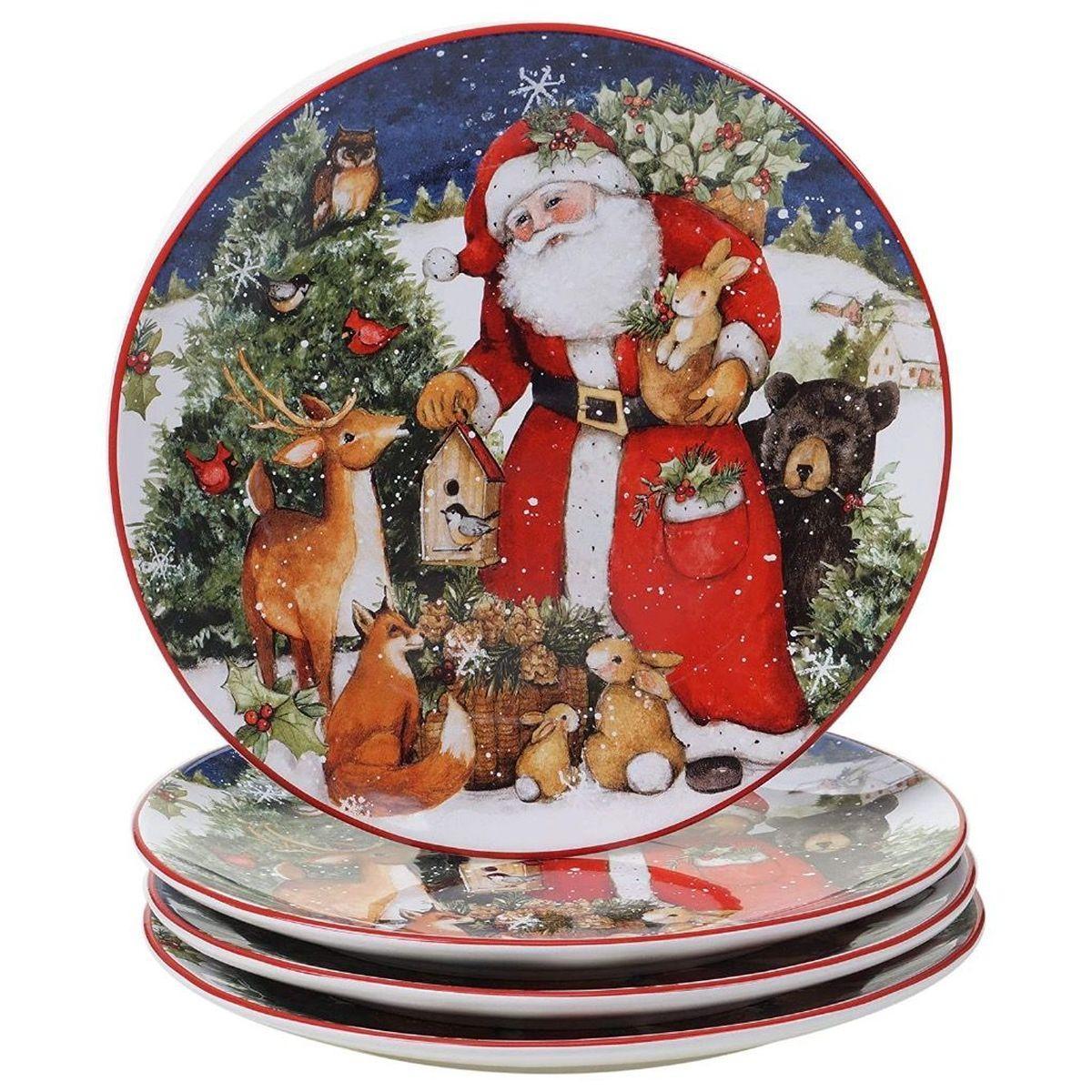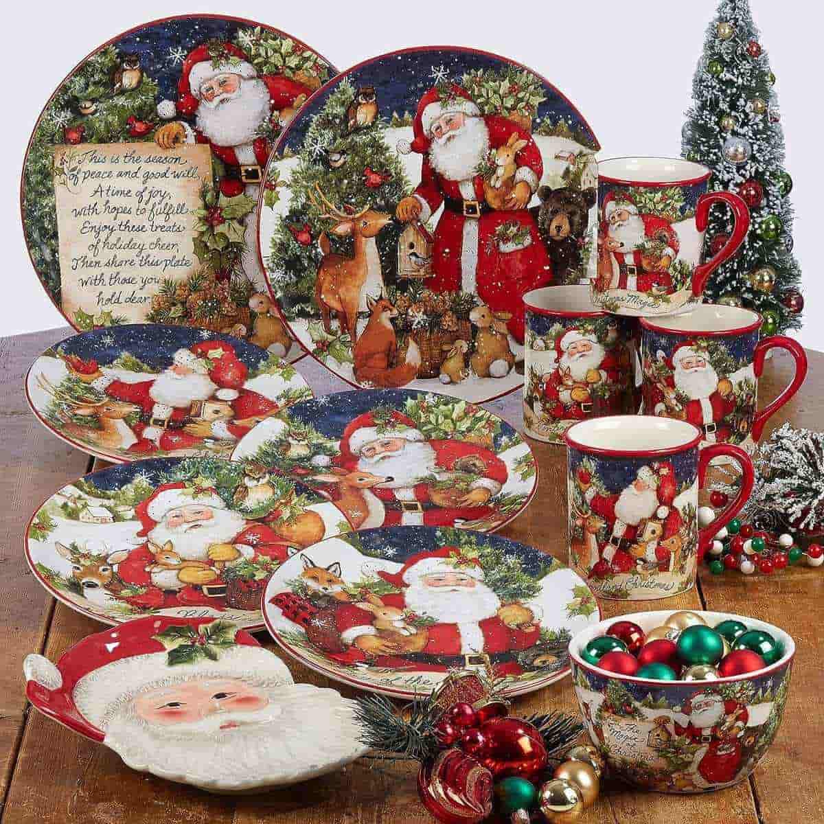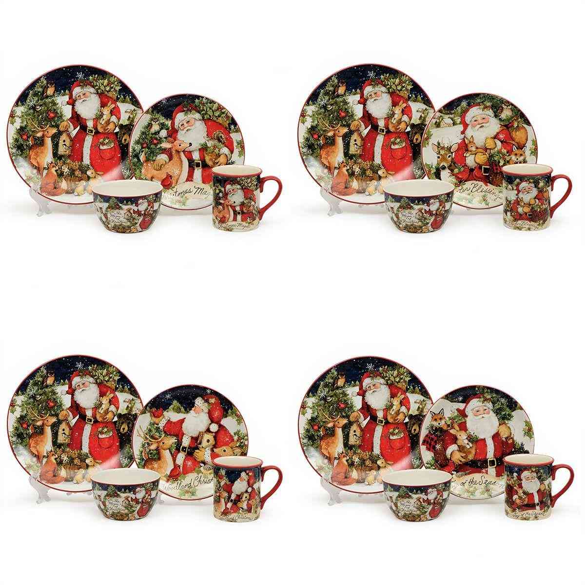 Керамічний новорічний сервіз на 4 особи Різдво з Сантою