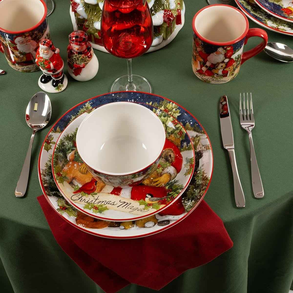 Столовий сервіз з екологічної та особливо міцної кераміки прикрашений тематичними різдвяними композиціями, створеними художницею С’юзан Уінгет спеціально для преміального бренду Certified International.