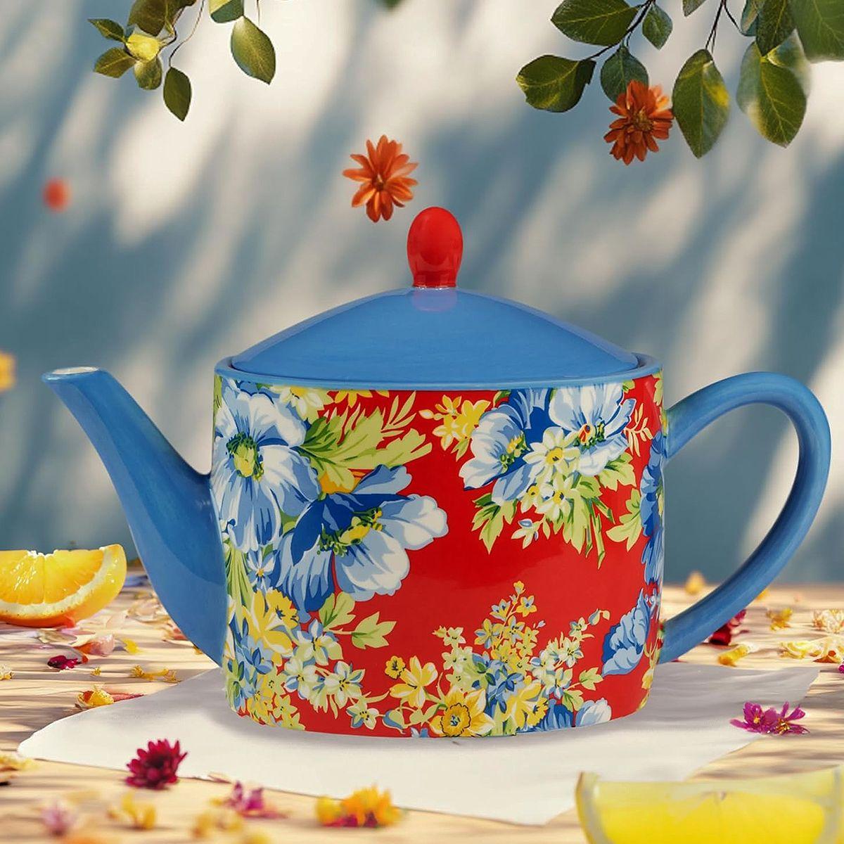 Керамічний різнокольоровий заварник із зображенням квітів «Феєрія квітів» від Certified International - це стильний і практичний аксесуар для справжніх поціновувачів чаю. Його яскравий дизайн у поєднанні червоного, блакитного та жовтого кольорів із квітковим орнаментом надає вашому чаюванню особливого шику та затишку.