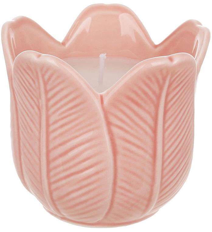 Керамічний рожевий свічник зі свічкою "Floral" D9*8 см