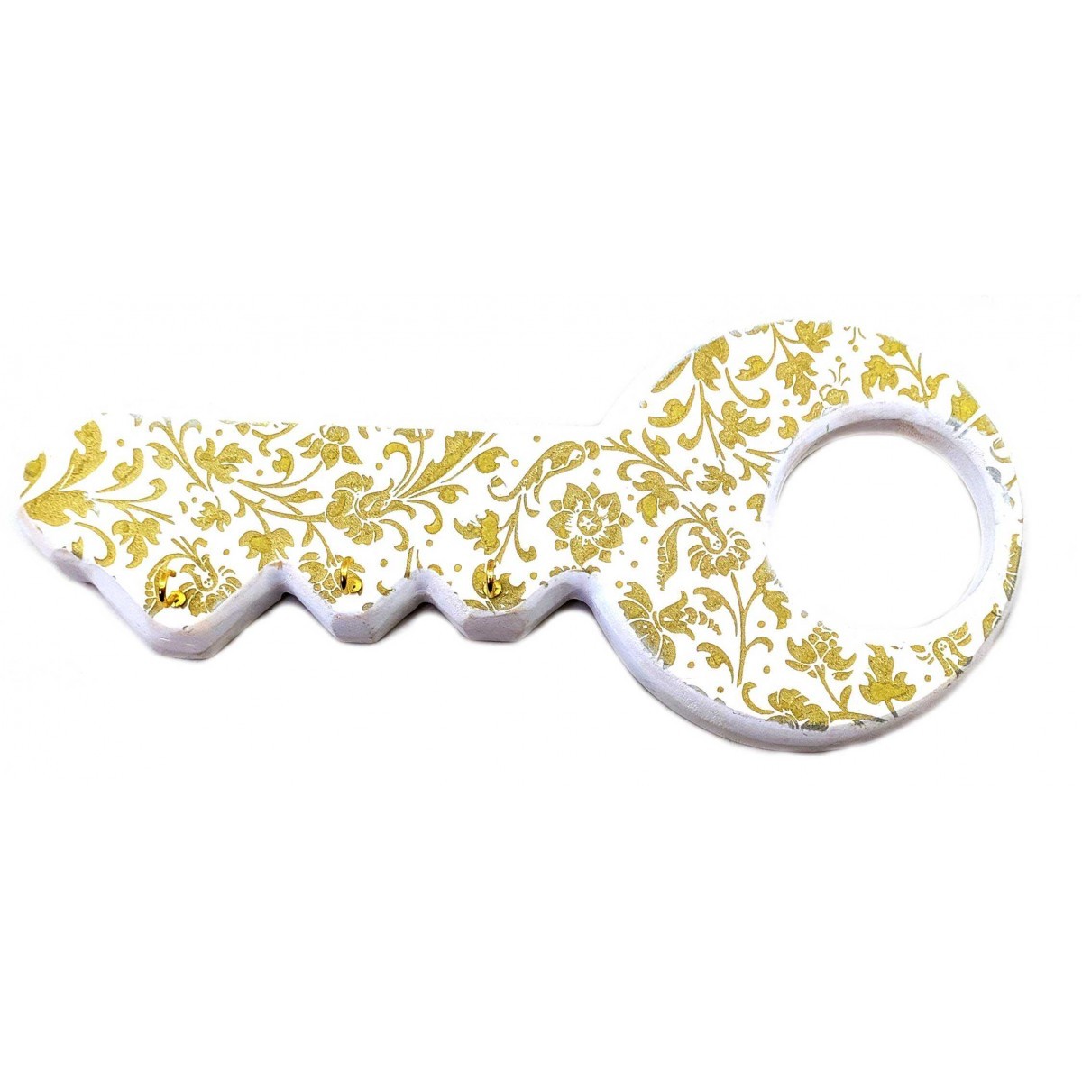 Ключница "Ключик" - это компактная и стильная ключница, которая изготовлена из массива дерева и покрыта белой краской с декоративной росписью. Она имеет размеры 27х12х2 см и оснащена несколькими крючками для хранения ключей, так что вы всегда будете знать, где находятся ваши ключи. Ключница отлично впишется в любой интерьер и станет удобным и практичным дополнением к вашему дому или офису.