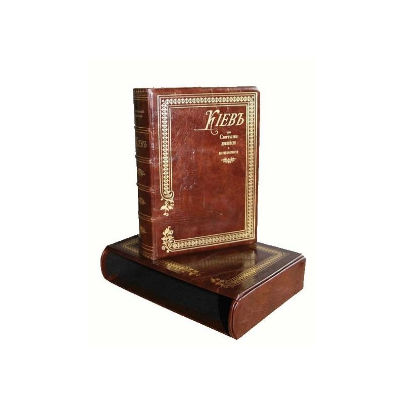 Книга «Київ, його святині, давнини та пам'ятки» Микола Максимовича Сементовського в суцільношкіряній палітурці та шкіряному подарунковому футлярі. Матеріал обкладинки: натуральна шкіра. Шкіряна обкладинка з ручної роботи об'ємним тісненням. При оформленні палітурки використані накладки на шкіру з міді, покриті сріблом, золотом, при цьому використані холодних емалей. Книга має золотий тристоронній обріз. У подарункову збірку «Київ, його святині, давнину та пам'ятку» входить дві книги: перша Сементовський Н.М. «Київ, його святині, давнину та пам'ятку». 299 сторінок. Друга «Практичний ілюстрований путівник Києвом» Ящевський Ч.А., 2-ге вид., 1913. - 264 сторінки., а також того часу копії з кольорових листівок - 64 сторінки. Репрінт Н.М. Сементівський «Київ, його святині, давнину та пам'ятку», 299 сторінок. Репринт видання 1913 року Ящевицький Ч.А. «Практичний ілюстрований путівник Києвом», 264 сторінки.