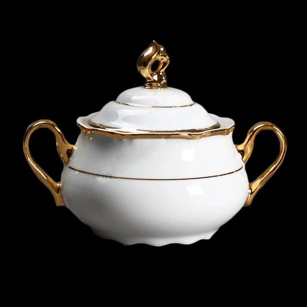 Чудесный кофейный сервиз выполнен из твердого фарфора 1 сорта по уникальным на сегодняшний день технологиям. Фарфор белого цвета с золотым ободком и красивыми золотыми ручками создаст атмосферу праздника. Его прочная структура и устойчивость к сколам позволяет пользоваться данной посудой каждый день. Фарфор чешского производителя Thun всегда будет выглядеть на Вашем столе элегантно и в тоже время нарядно и торжественно. Высокое качество продукции «Thun» достигается многовековым опытом в производстве фарфора. Использование самых современных технологий позволяет производить изделия различных размеров и форм.