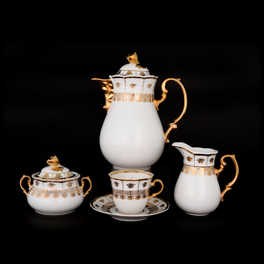 Кофейный сервиз Мокка Menuet-Золотой орнамент Thun 17 предметов на 6 персон