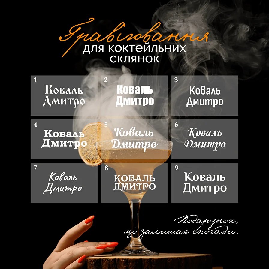 Доступне індивідуальне гравіювання на замовлення.