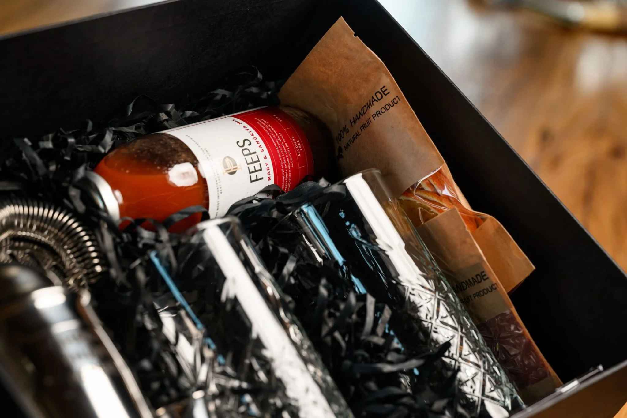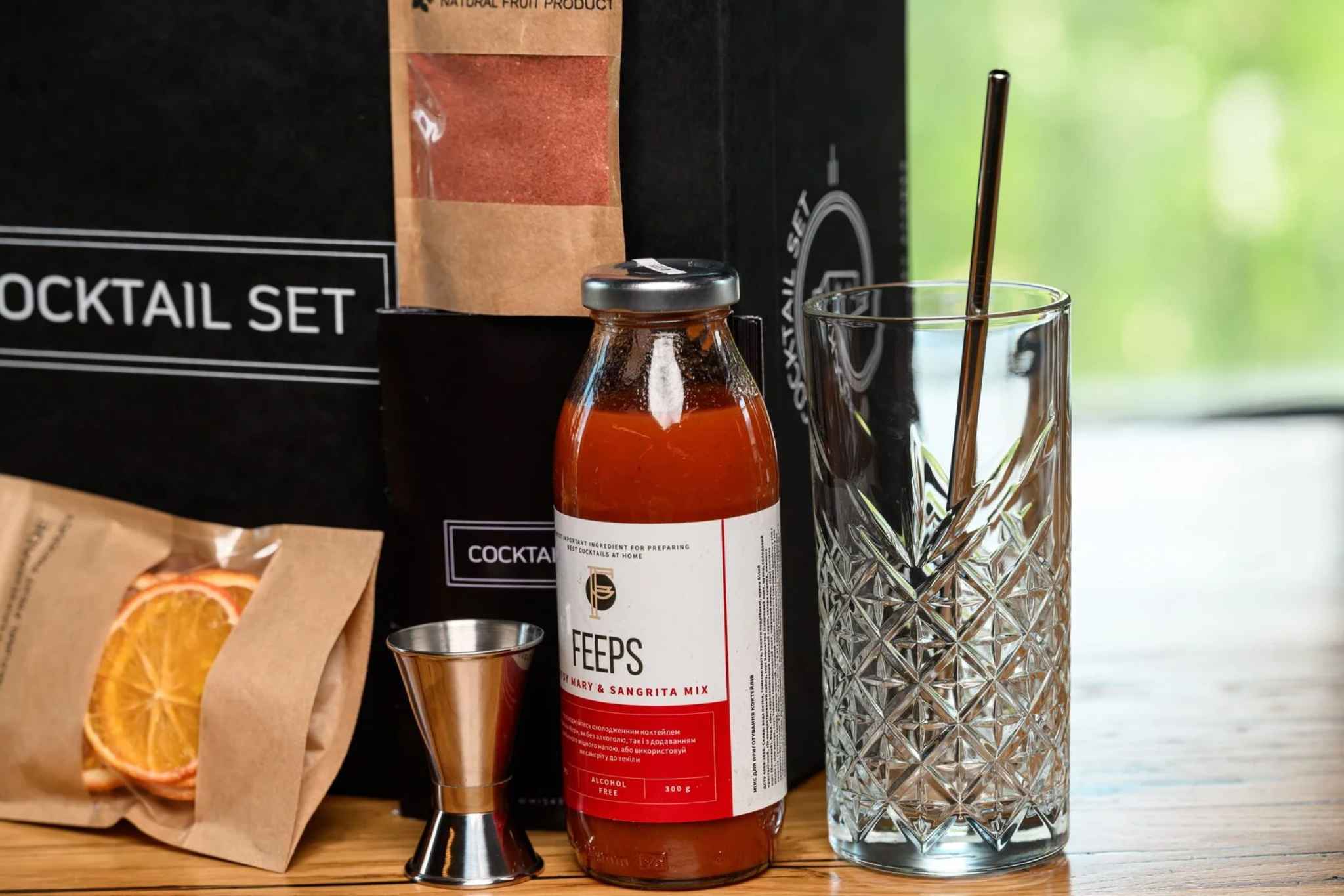— Основа для коктейлю: FEPS Sour Mix / FEPS Porn Star Mix / FEPS Gin Garden Mix / FEPS Bloody Mary & Sangrita