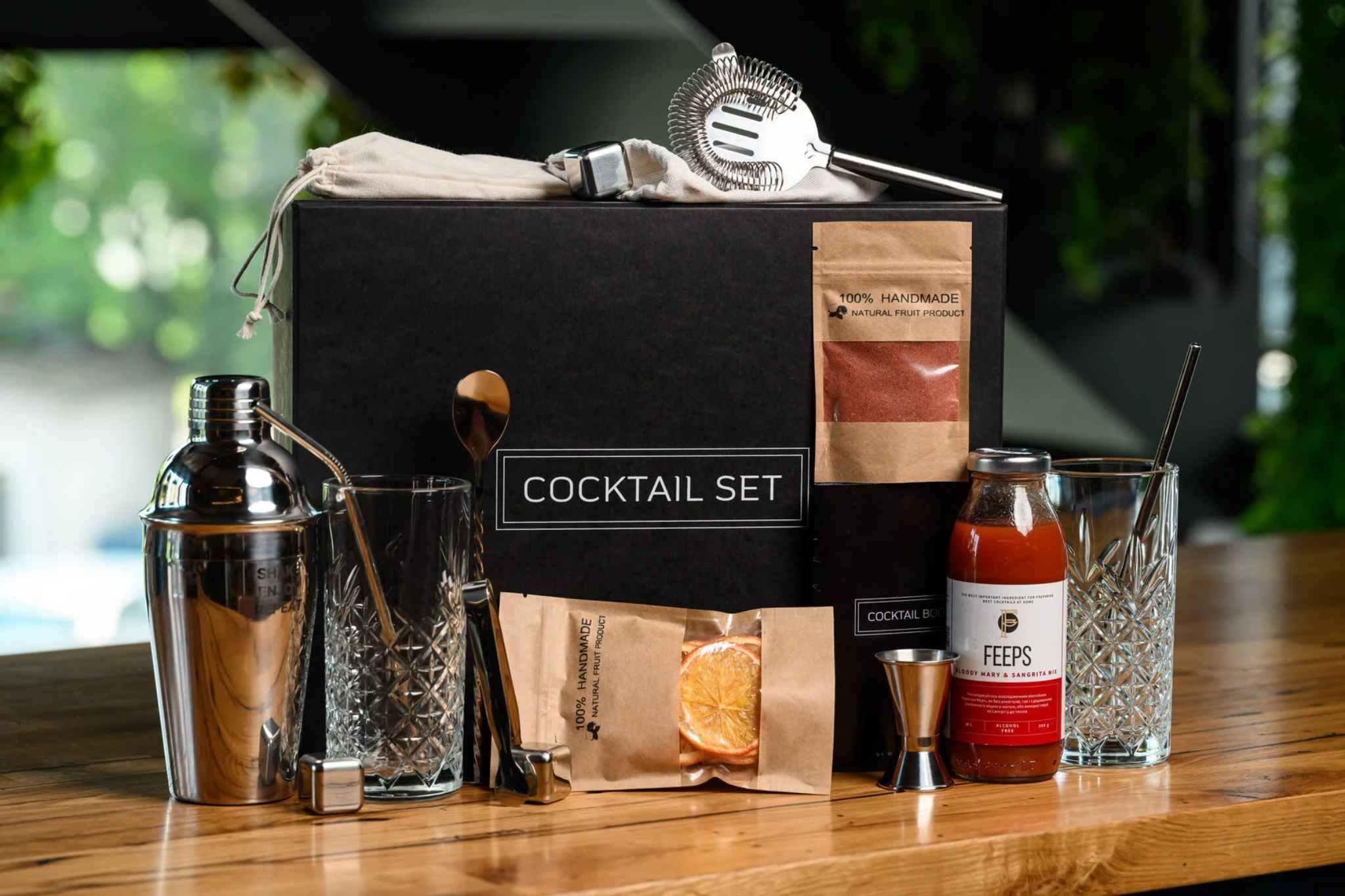 Цей набір створений для того, щоб перетворити звичайний вечір на стильний барний ритуал. Тут кожна деталь працює на результат: смак, аромат і настрій поєднуються в гармонійну історію. Комплект стане ідеальним вибором як для тих, хто лише робить перші кроки у світі міксології, так і для тих, хто вже добре знає свої улюблені поєднання. Тепер не потрібні барна стійка чи професійний бармен — достатньо бажання експериментувати й цього продуманого набору. Створюй коктейлі легко, впевнено та з подачею, якою хочеться ділитися з друзями.