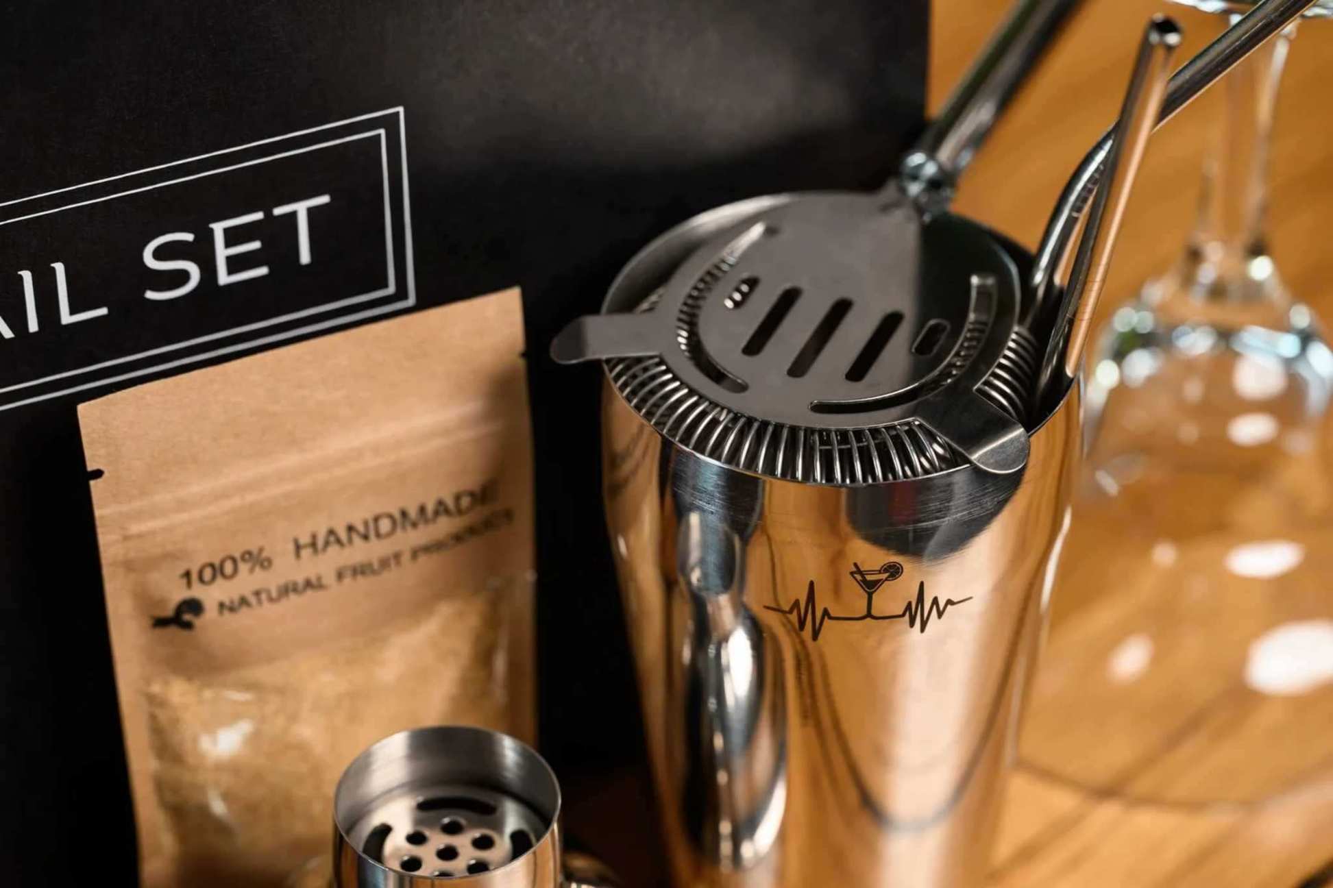 Цей набір — більше, ніж просто набір аксесуарів. Це інструмент для створення настрою домашнього бару, де кожен коктейль розкривається по-своєму: зі своїм смаком, ароматом і настроєм. Він однаково добре підійде тим, хто тільки починає знайомство з міксологією, і тим, хто вже впевнено експериментує з рецептами та подачею. Тепер для ідеального коктейлю не потрібні ні бармен, ні довгі пошуки меню — достатньо цього комплекту, гарного настрою та бажання творити. Готуй напої легко, із задоволенням і стилем, який хочеться продемонструвати у приємній компанії.