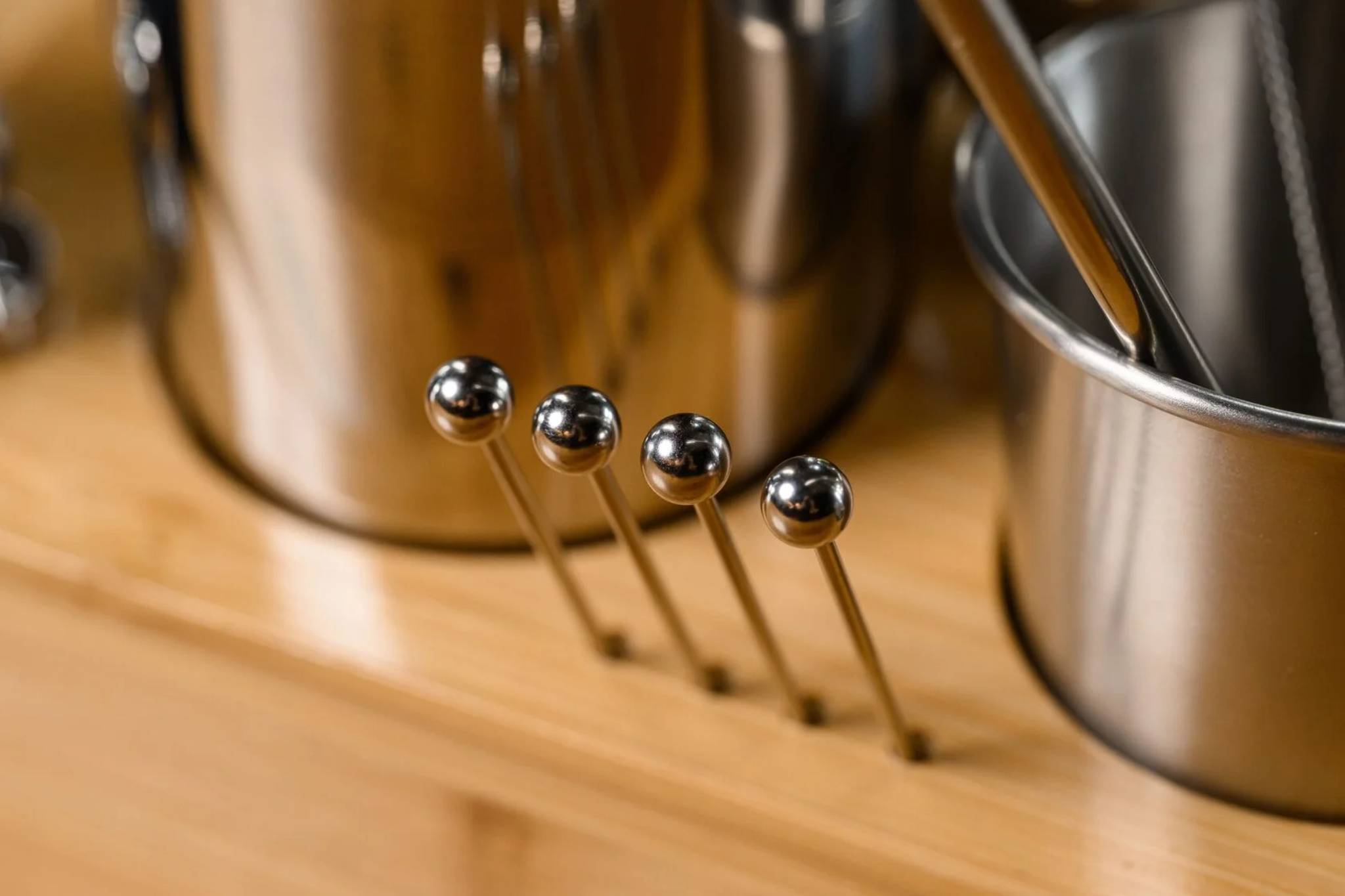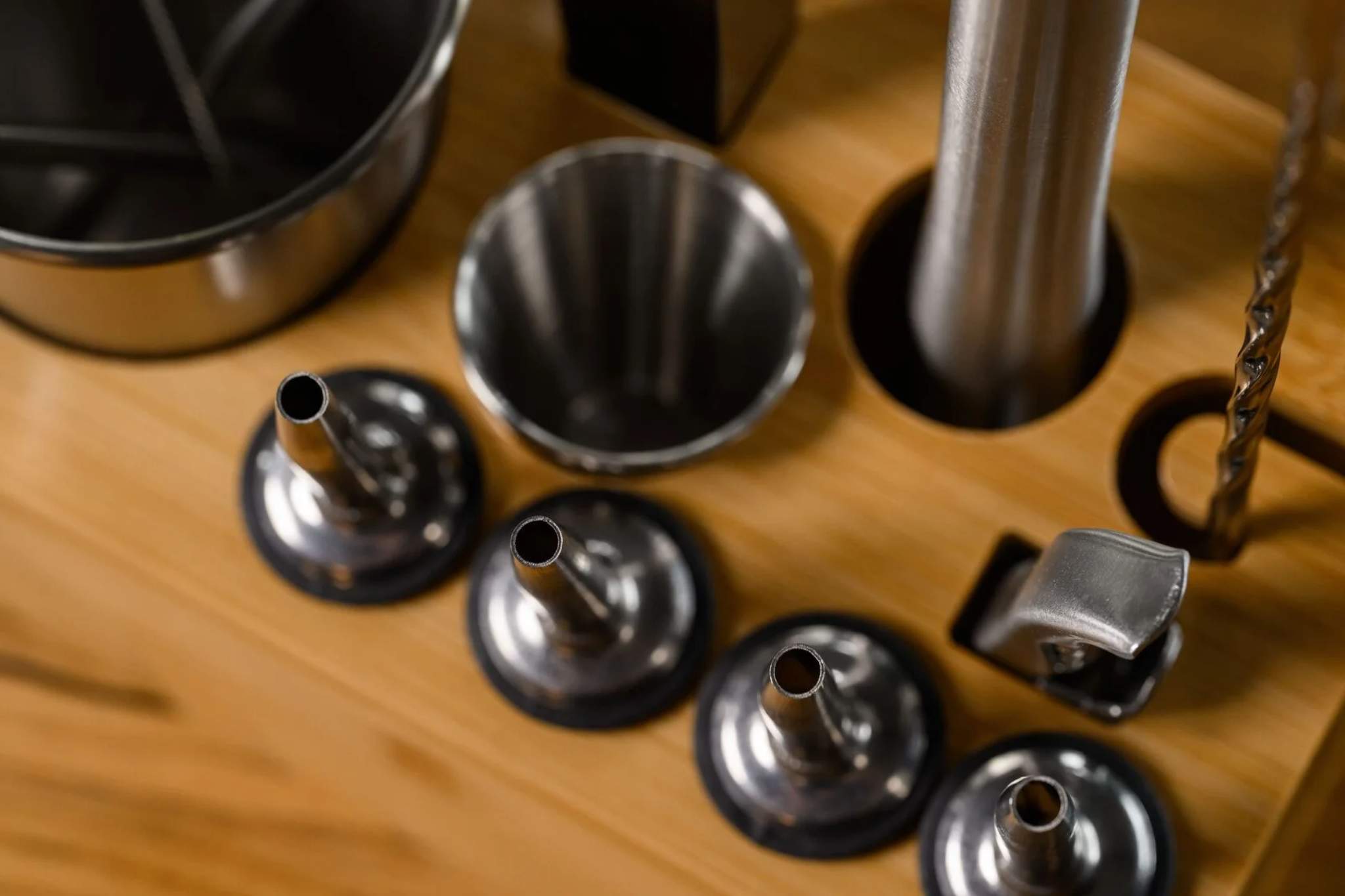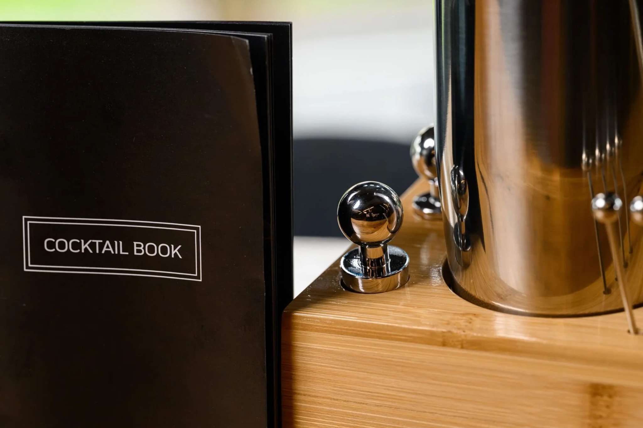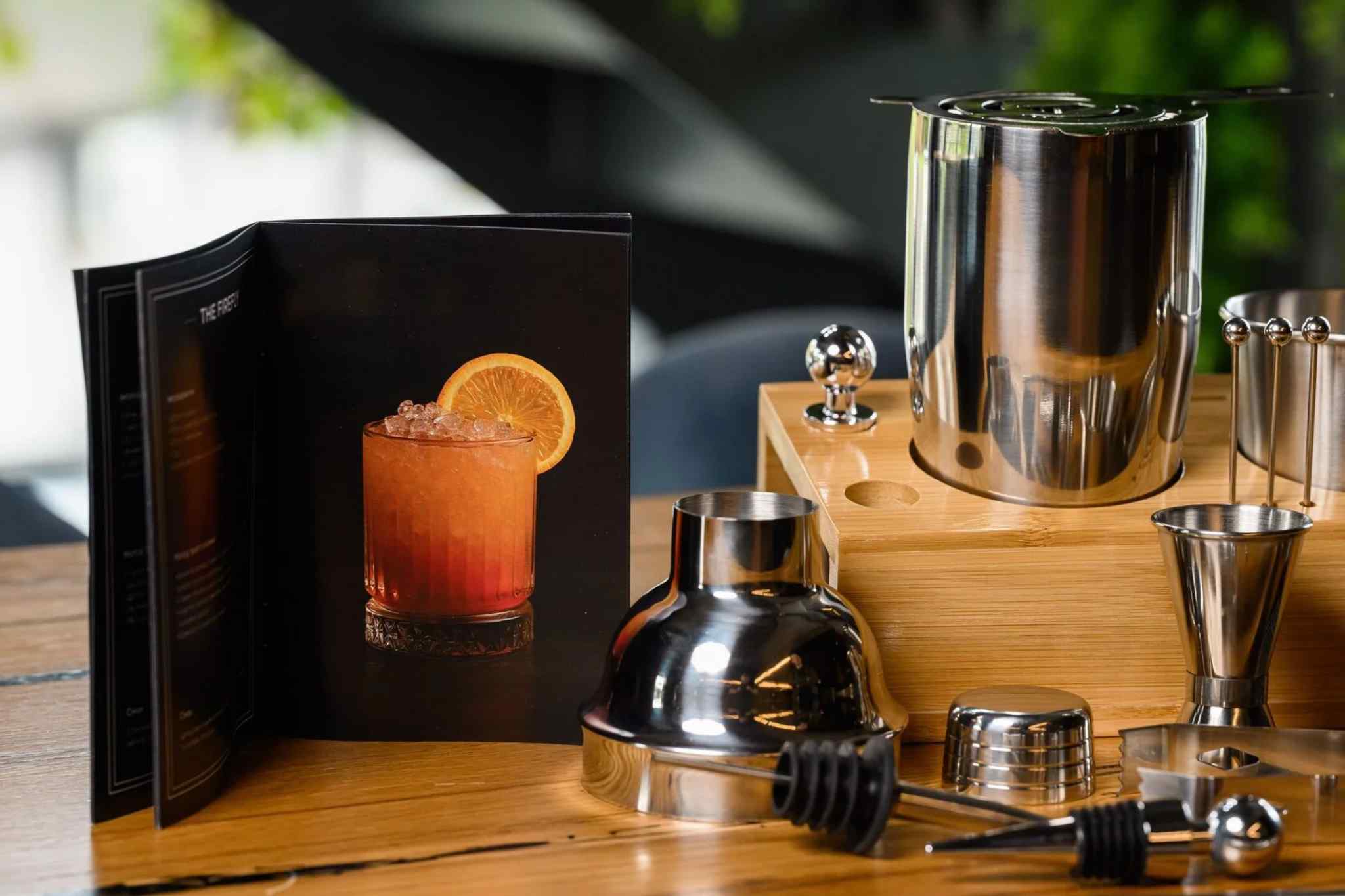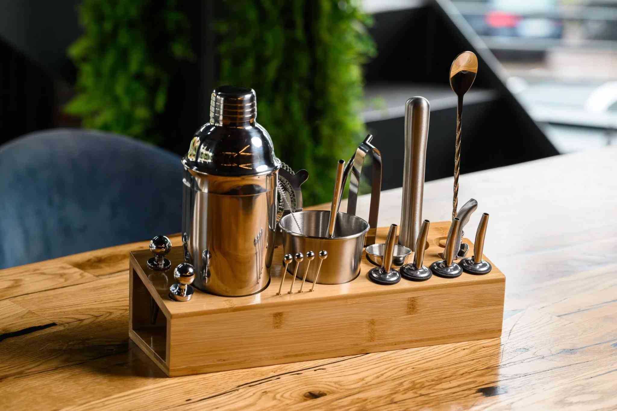 Функціональний та продуманий набір аксесуарів для приготування коктейлів стане надійним помічником для тих, хто любить створювати барні напої вдома. З цим комплектом процес змішування коктейлів стає швидким, зручним і зрозумілим, адже всі необхідні інструменти вже зібрані в одному наборі. Елегантна дерев’яна підставка додає естетики та гармонійно доповнює інтер’єр домашнього бару.