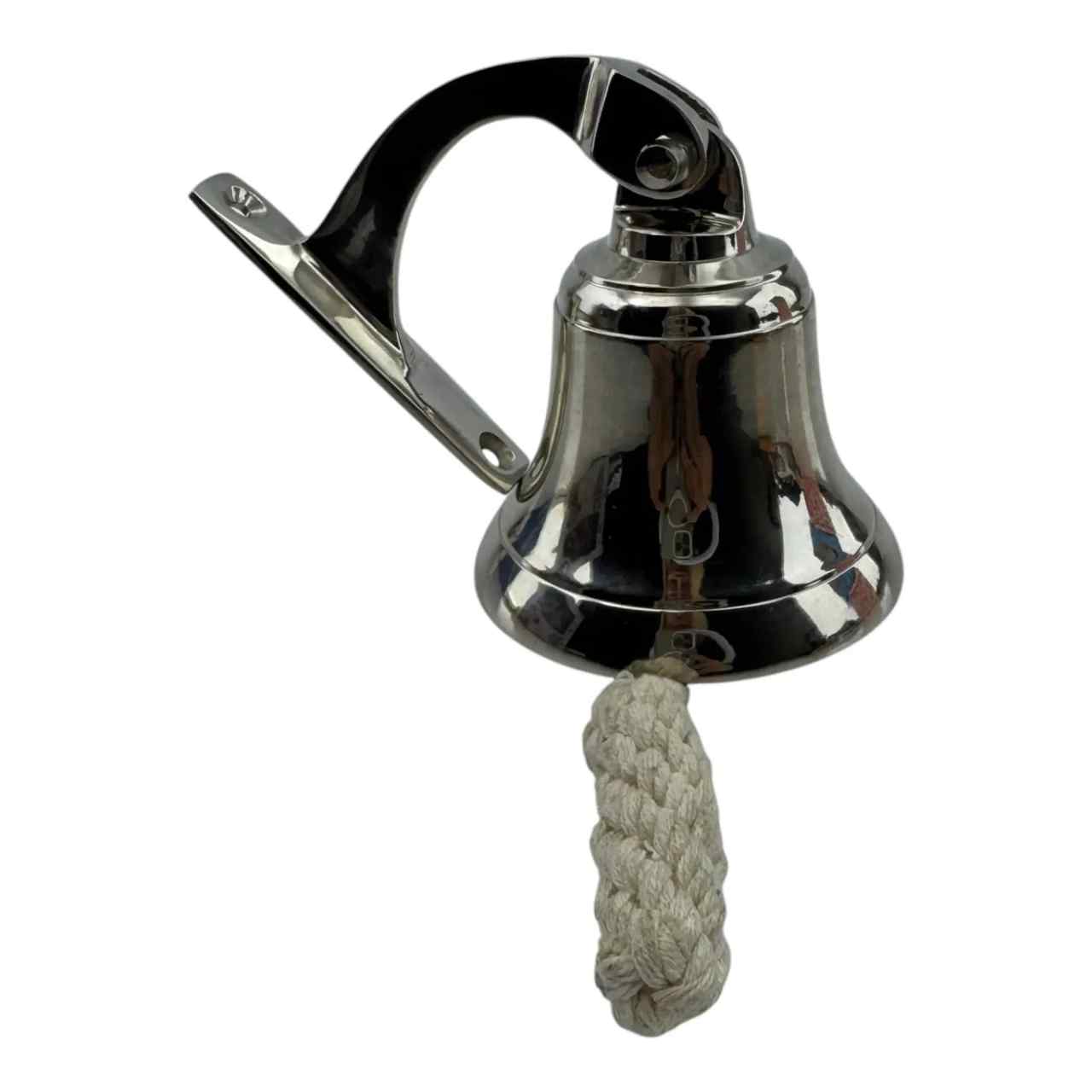 Элегантная рында из бронзы с хромированным покрытием — изысканный аксессуар с выразительным зеркальным блеском. Металлическая поверхность отражает свет, создавая эффектный акцент и подчёркивая морскую эстетику изделия.
